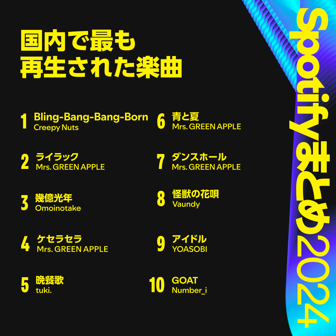 2024年に最も聴かれた曲は? Spotifyが年間ランキングを発表