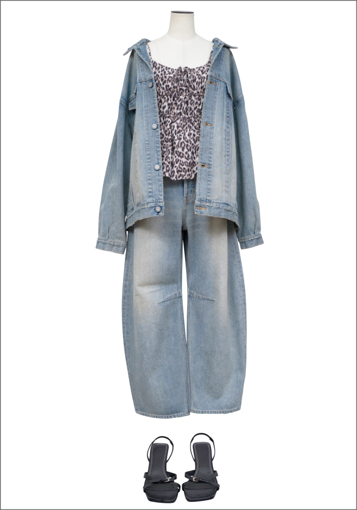 24年春夏に好調だったデニムを継続強化。セットアップの展開は春〜夏まで、素材やデザインを変えて打ち出す。ビンテージ加⼯のオーバーサイズジャケットに、⽴体感のあるバレルシルエットのパンツでモード感を加えた。デニムに合う軽やかなブラウスやキャミソールも充実させる。 25周年の来春夏は、さまざまなブランドとのコラボを予定。