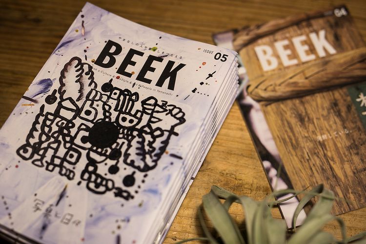 土屋代表は東京で9年間、編集者やデザイナー、アートディレクターとして働き、13年に山梨にUターンした。「もともと山梨に戻るつもりで、10年に東京で独立した後は山梨の仕事も手掛けていた」と振り返る。山梨でまず始めたのは「やまなしの人や暮らしを伝える」をコンセプトにしたフリーペーパー「BEEK」の創刊だ。「まずは僕自身が山梨の今を知るために始めた。楽しく山梨を知ろうと毎号テーマを設けて会いたい人に会いに行き、写真撮影から原稿の執筆、レイアウトデザインまで全部ひとりで行った」。東京で覚えた雑誌編集やデザインのスキルが役立った。最初は5000~6000部を発行し、現在1万部を発行する。