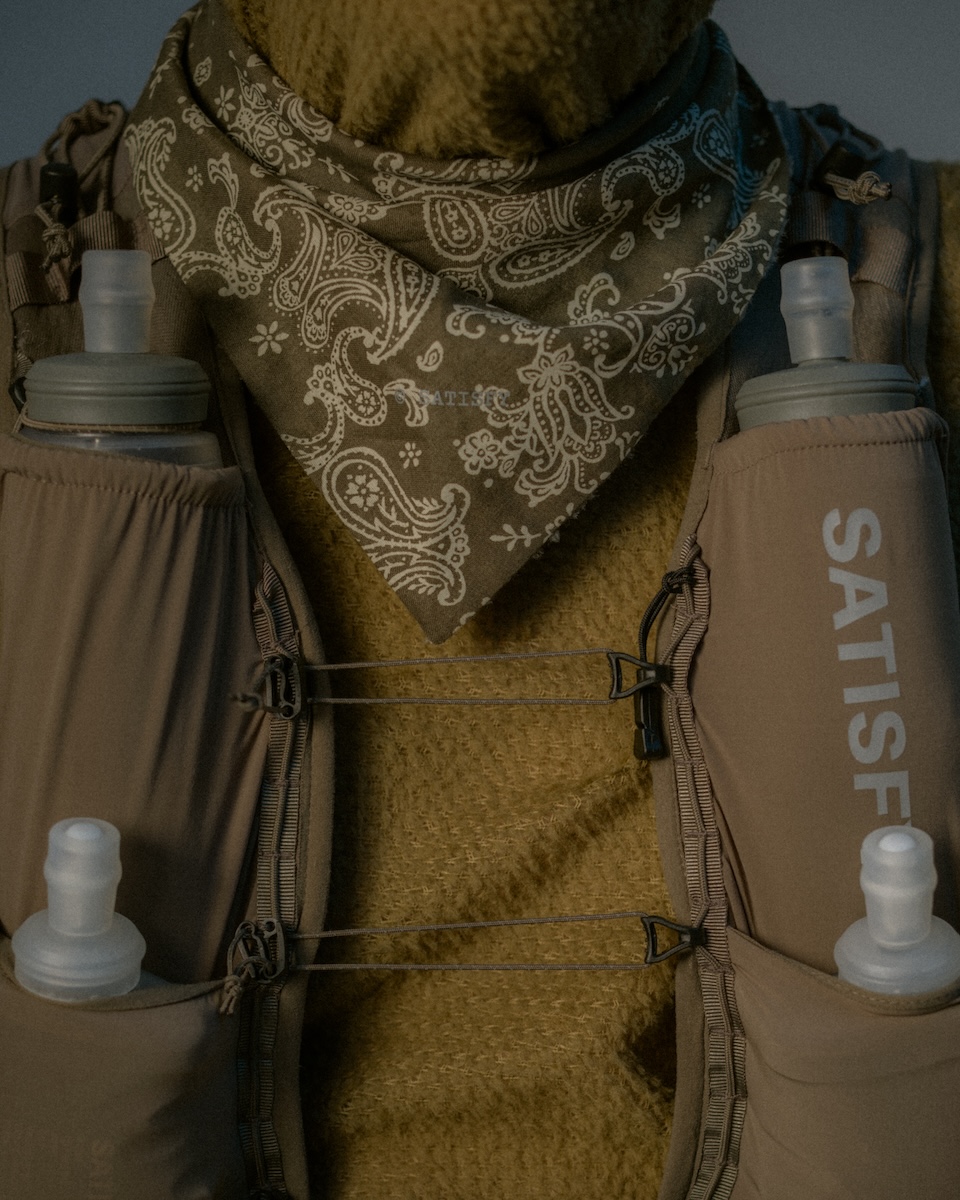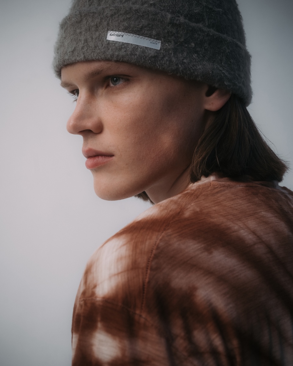 「サティスファイ」はスキニージーンズで人気を博した「エイプリル77(APRIL 77)」を手掛けていたブライス・パルトゥーシュ(Brice Partouche)が立ち上げたランニングウエアブランドで、ファッション業界での経験を背景に、機能性と共にデザイン性にも重点を置く。スケートボードやパンクロックのカルチャーに触れてきた彼の美学を反映し、ビンテージ加工やニュアンスカラー、パッチーワークのディテールなどをポイントにしたランニングウエアを展開する。