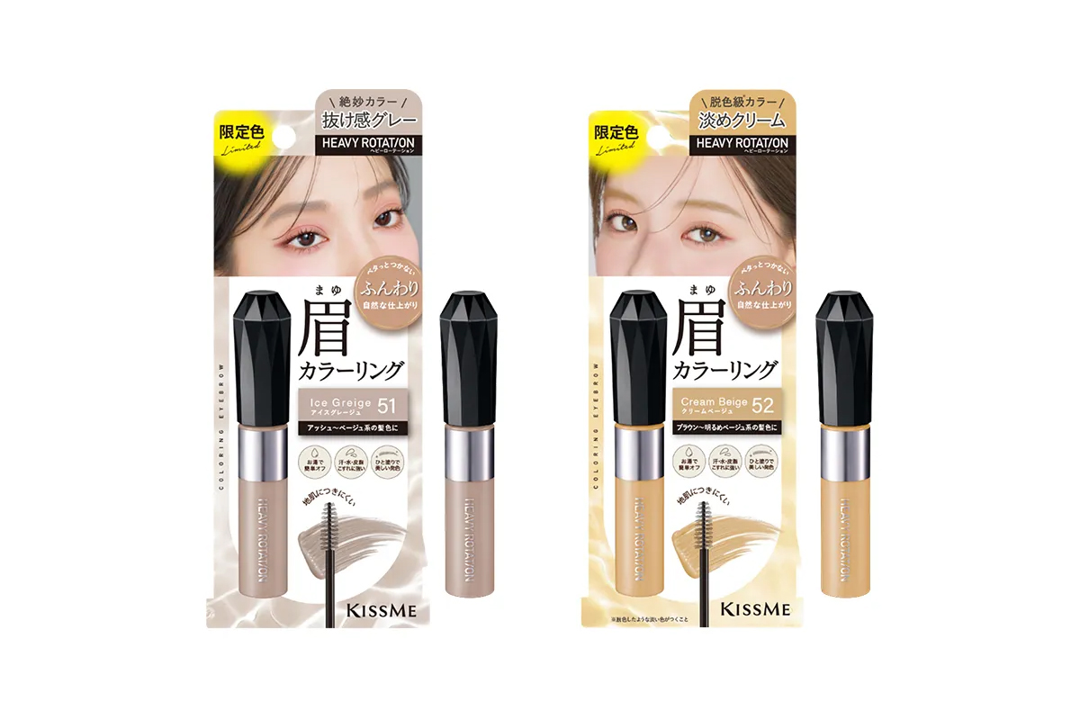 「ヘビーローテーション(HEAVY ROTATION)」は、眉マスカラ“カラーリングアイブロウ EX”から限定の2色を発売する。明るめな発色で、ひんやり涼しげなアイスグレージュと淡く柔らかなクリームベージュの2色を用意する。