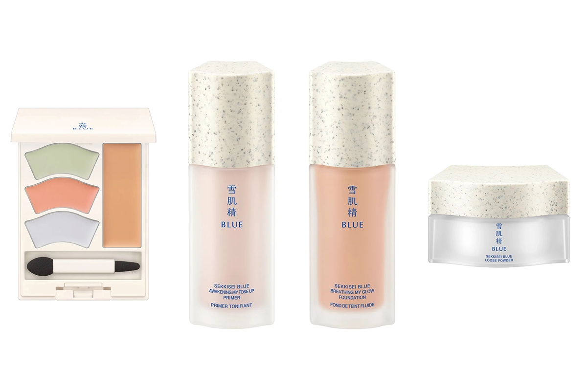 「雪肌精(SEKKISEI)」の新スキンケアシリーズ“雪肌精 ブルー”から、東洋発想に着目したコンシーラーと化粧下地、ファンデーション、フェイスパウダー2種が登場する。