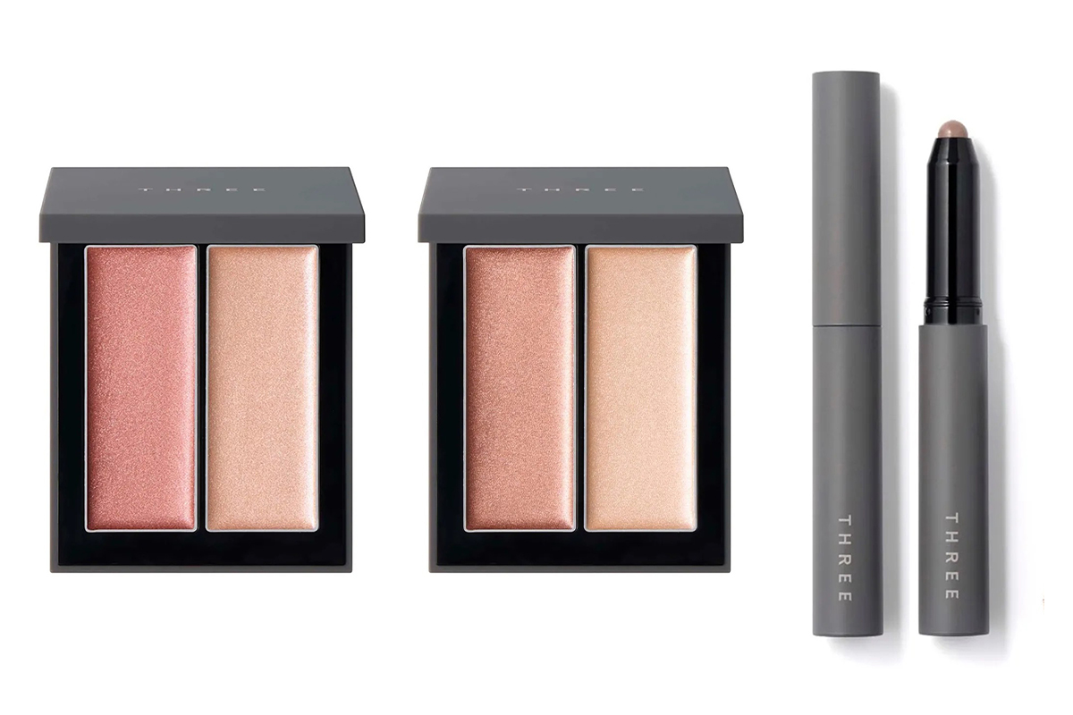 「スリー(THREE)」は、ブランドデビュー時の2009年に誕生した“シマリング グロー デュオ”を初めてリニューアルするほか、新製品のスティックタイプのシェーディング、 “ディメンショナル シェイディングワンド”も加わる。