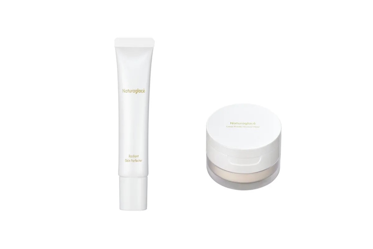 「ナチュラグラッセ(NATURAGLACE)」は、透明感と自然な血色感を演出する“ラディアント スキンパーフェクター N”[SPF32・PA++]と内側から発光するような輝きを放ちシルクのような肌質感へ整える“ルースパウダー ラディアント モイスト N”を用意する。