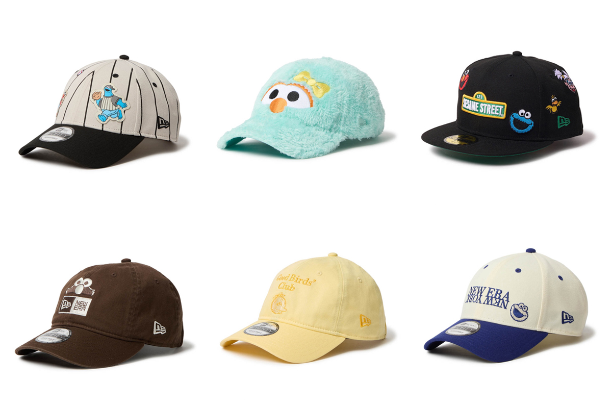 「ニューエラ(NEW ERA)」は、「セサミストリート」とのコラボアイテムを発売する。キャラクターやロゴの刺しゅうしたものや、顔をふわふわした生地で表現したもの、野球を思わせる意匠を配したものなど、多数のキャップを制作したほか、ニット帽やウエア、キッズサイズのキャップとニット帽もラインアップする。またゴルフコレクションと題し、キャップとロンTも制作した。