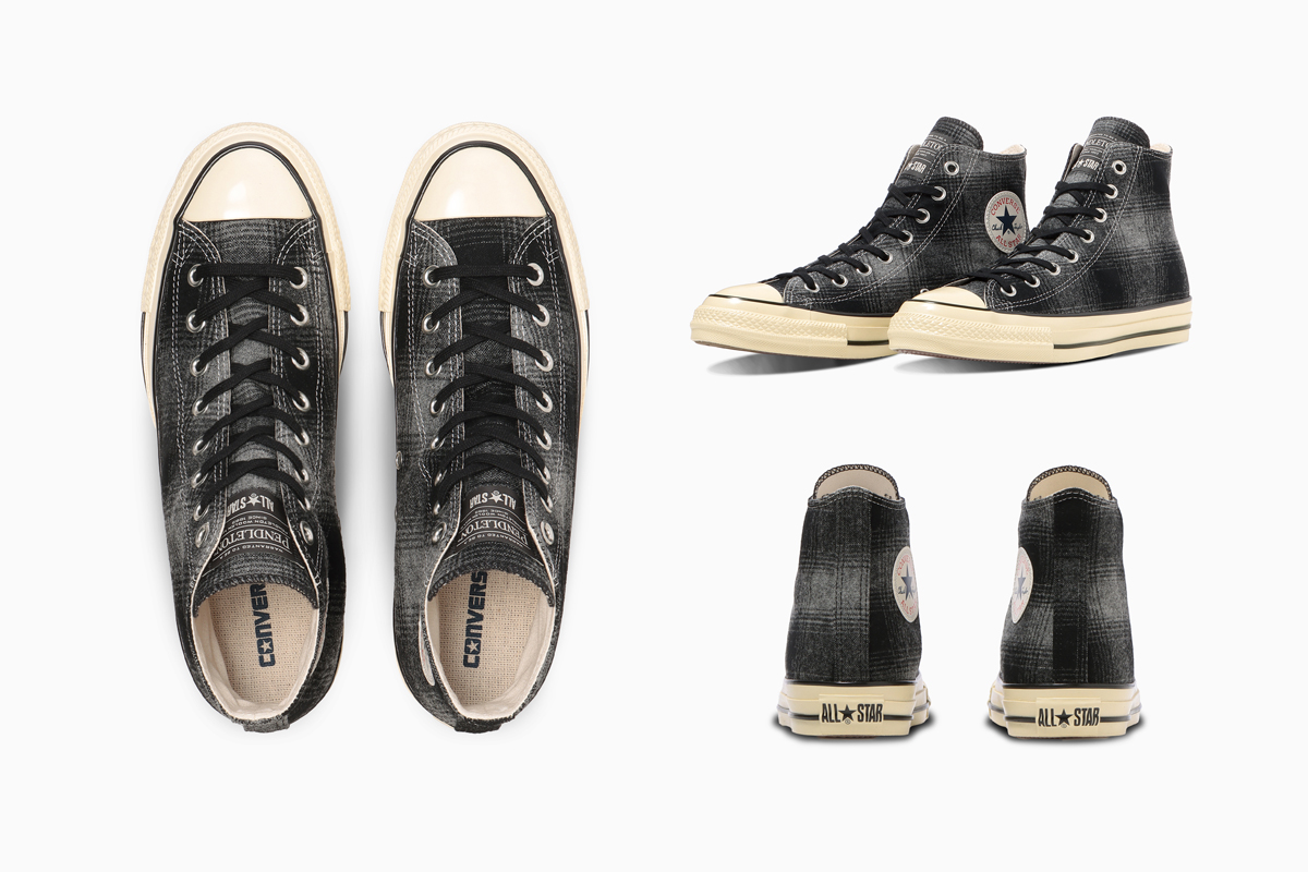 「コンバース(CONVERSE)」は、「ペンドルトン(PENDLETON)」とのコラボスニーカーを制作した。毛織物で知られる尾州で仕上げた、オンブレチェック柄のオリジナルウールファブリックをアッパーに配し、“オールスター”と「ペンドルトン」のロゴを付したタンをあしらう。