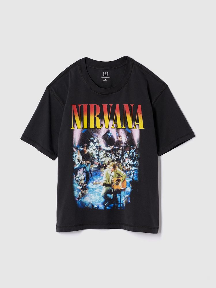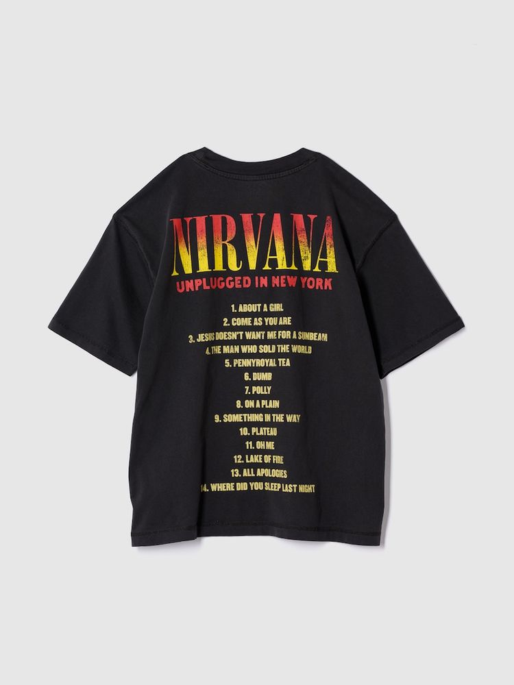 ロックバンドのニルヴァーナ(NIRVANA)とのコラボは、1994年発売のライブアルバム「Unplugged In New York」のグラフィックをあしらう。