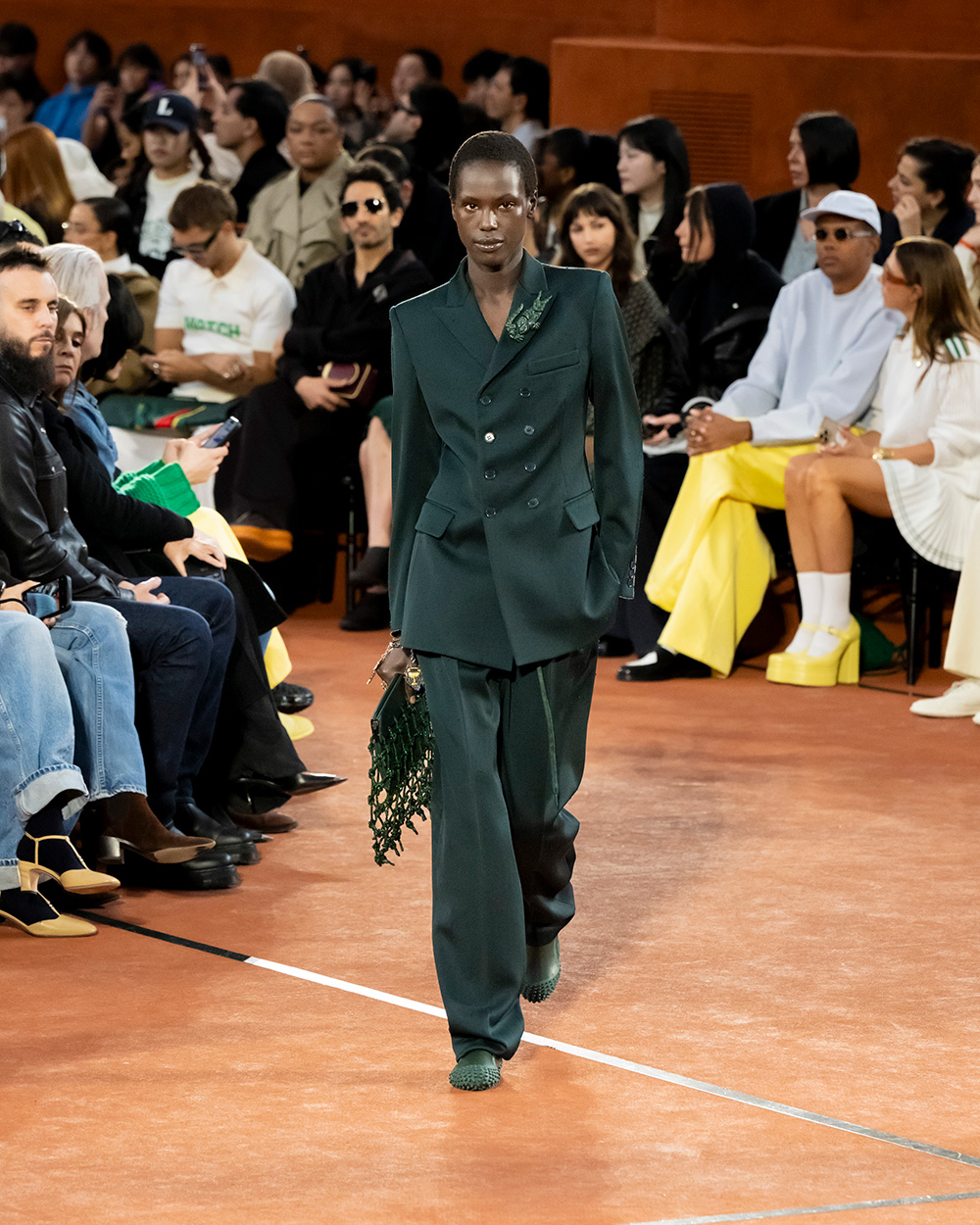 トップに就任するマチュー・ブレイジー(Matthieu Blazy)のデビューは10月になるため、今季もデザインチームによるコレクション。自立した女性の代表とも言える創業者ココ・シャネル(Coco Chanel)が確立したメゾンコードを、現代的に再解釈した。象徴的なスーツスタイルは、チュールのケープで覆ったり、ラップスカートとフレアパンツを重ねたり、ニットのトロンプルイユで表現したり。キーディテールはリボンで、ボウタイや袖口の装飾からプリント、ヘアアクセサリーにまで用いた。