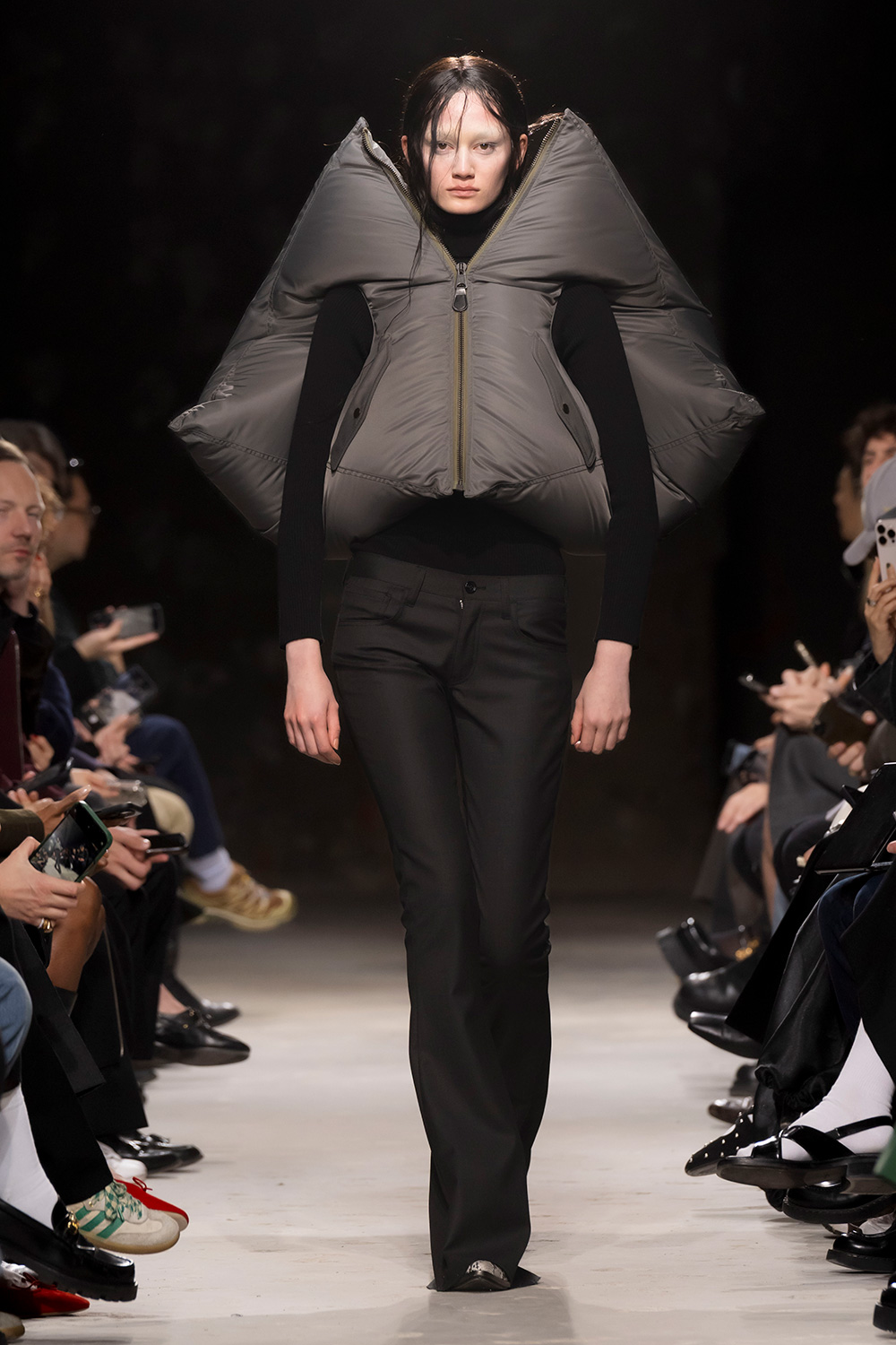 昨年「LVMH賞」で特別賞に選ばれた若手デザイナーは、シェイプへのユニークな視点が強み。今季は、肩のラインが耳までせり上がっていたり、平らなプリーツスカートが体の前で浮くように固定されていたり。ユーモラスで自由なアプローチはそのままに、ウエアラブルな提案も強化している。