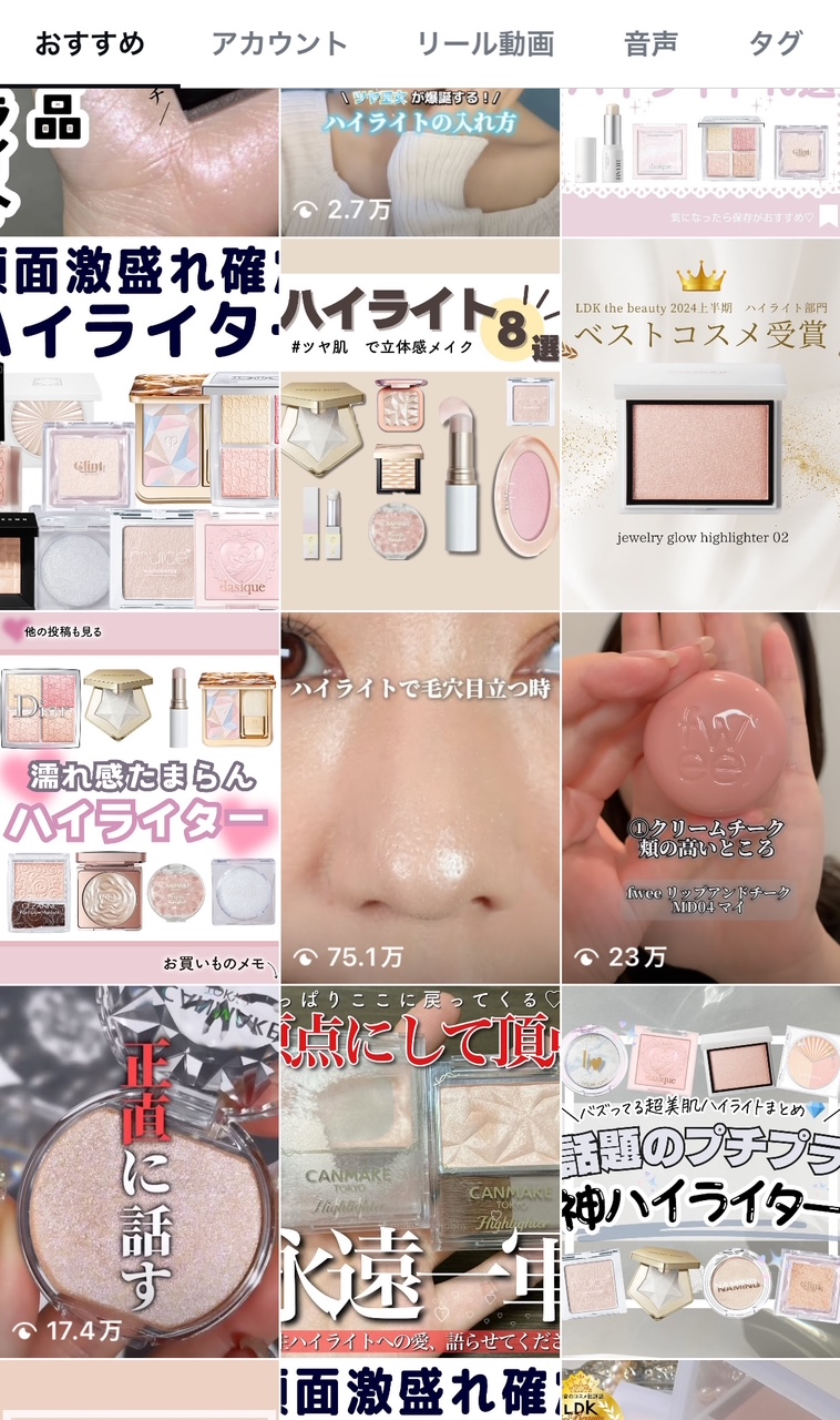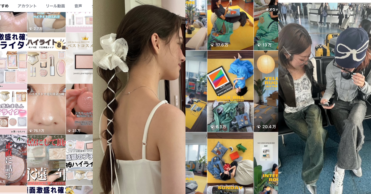 こちらは1年通してニーズのあるコンテンツですが、洋服の衣替えがあるのと同様に、冬から春への季節の変わり目には化粧品や髪形に関するニーズもたくさんあります。「春メイク」「お花見デートヘアアレンジ」といったヘアメイク関連の投稿/リールが急増します。とはいえメイク動画には「すっぴんから撮る」といったハードルが高い印象がありますよね。ただ、ここ数年メイク動画の種類はいろいろ増えていて、簡単に撮影できるものもあるのでご安心を。オススメはメイクの一部分だけを紹介するもの。例えば「春のチーク試してみた」「リップグロス好きの私がオススメする春の定番グロス3選」など、自分の好きなアイテムだけを紹介するコンテンツも高いニーズがありますよ。また、「お直しメイク動画」だと直す工程を紹介するだけなので、比較的気軽にできますよ。