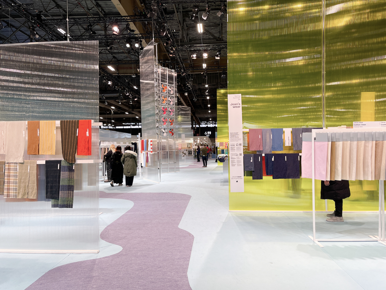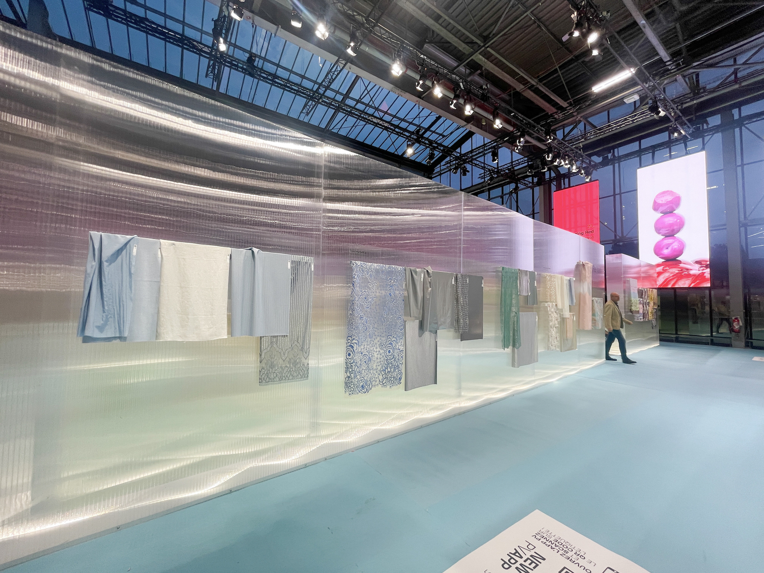 「ミラノ・ウニカ(MILANO UNICA)」「プルミエール・ヴィジョン(PRMIERE VISION)」、いずれの大型見本市でもスラブやネップ糸、ダメージ加工など、粗野感のある生地が多数登場しました。色味は未染色、ベージュ、草木染め風の淡いトーン、インディゴなど自然由来の色合いがトレンドに。使い古したような「パステルヴィンテージカラー」も新鮮な印象を与えていました。