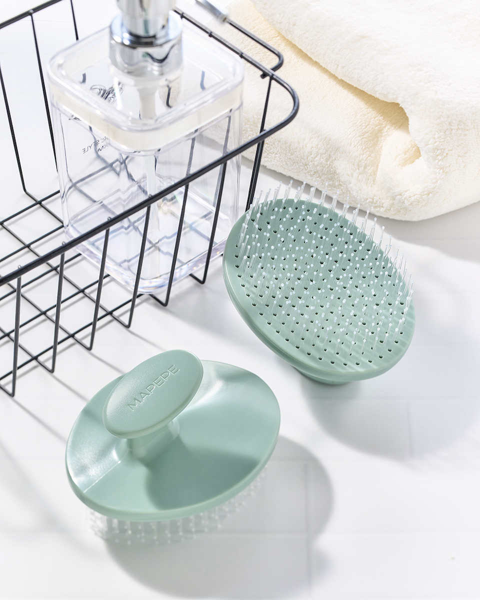 ヘアグッズブランドの「マペペ(MAPEPE)」は5月8日、絡まりをほぐして美髪に仕上げる“デタングリングブラシ”シリーズから、頭皮をすっきり洗う“デタングリングシャンプーブラシ<グレイッシュミント>”(1320円)を発売する。