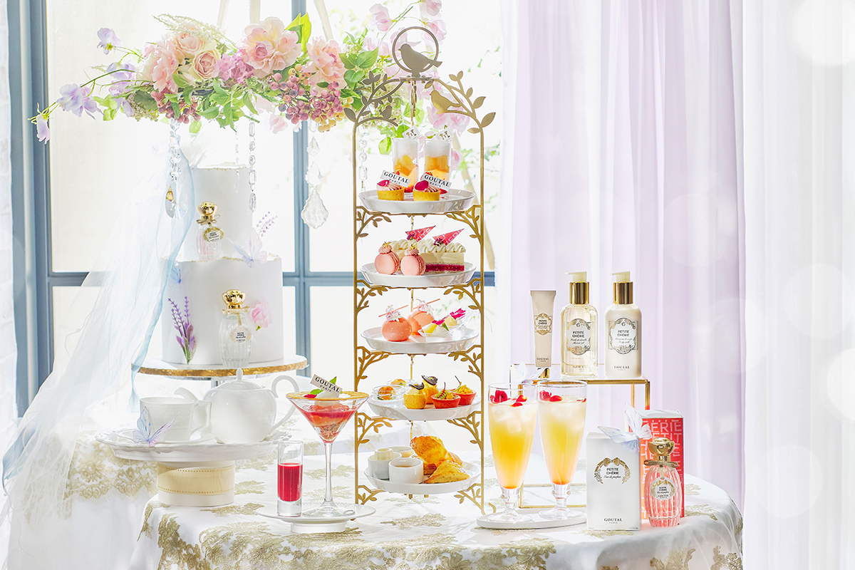 パリ発フレグランスメゾン「グタール(GOUTAL)」は、ストリングスホテル名古屋とコラボレーションし、7月1日から代表的フレグランス“プチシェリー”に着想したアフタヌーンティーを同ホテルの「ニューヨークラウンジ」と「グラマシースイート」で提供する。時間は11時~21時30分(ラストオーダー 20時)で期間中は毎日開催する。限定メニューを注文すると先着順で限定商品がもらえる。
