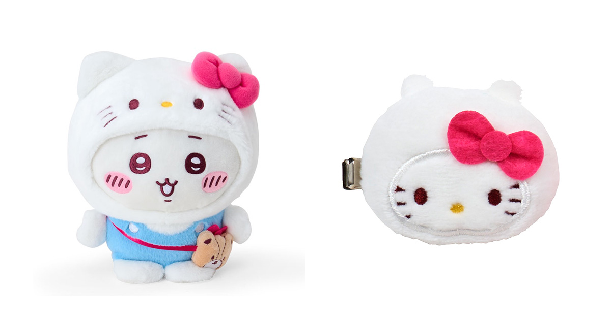 同シリーズは“なりきりコスチューム”をテーマに、ちいかわとサンリオのキャラクターがお互いのスーツを身にまとって登場。ちいかわ&ハローキティ、ハチワレ&シナモロール、うさぎ&ポムポムプリン、モモンガ&クロミ、古本屋&マイメロディのペア同士がそれぞれのキャラクターになりきった愛らしい姿でデザインした。