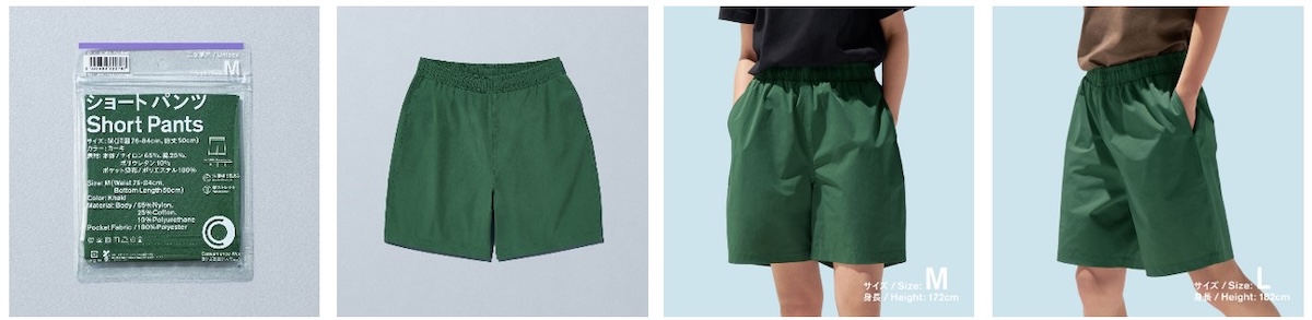 ショートパンツ(1998円)は綿とナイロンの混紡糸を使用した素材で、軽量でしわになりにくく、ストレッチ性もかなえた。
