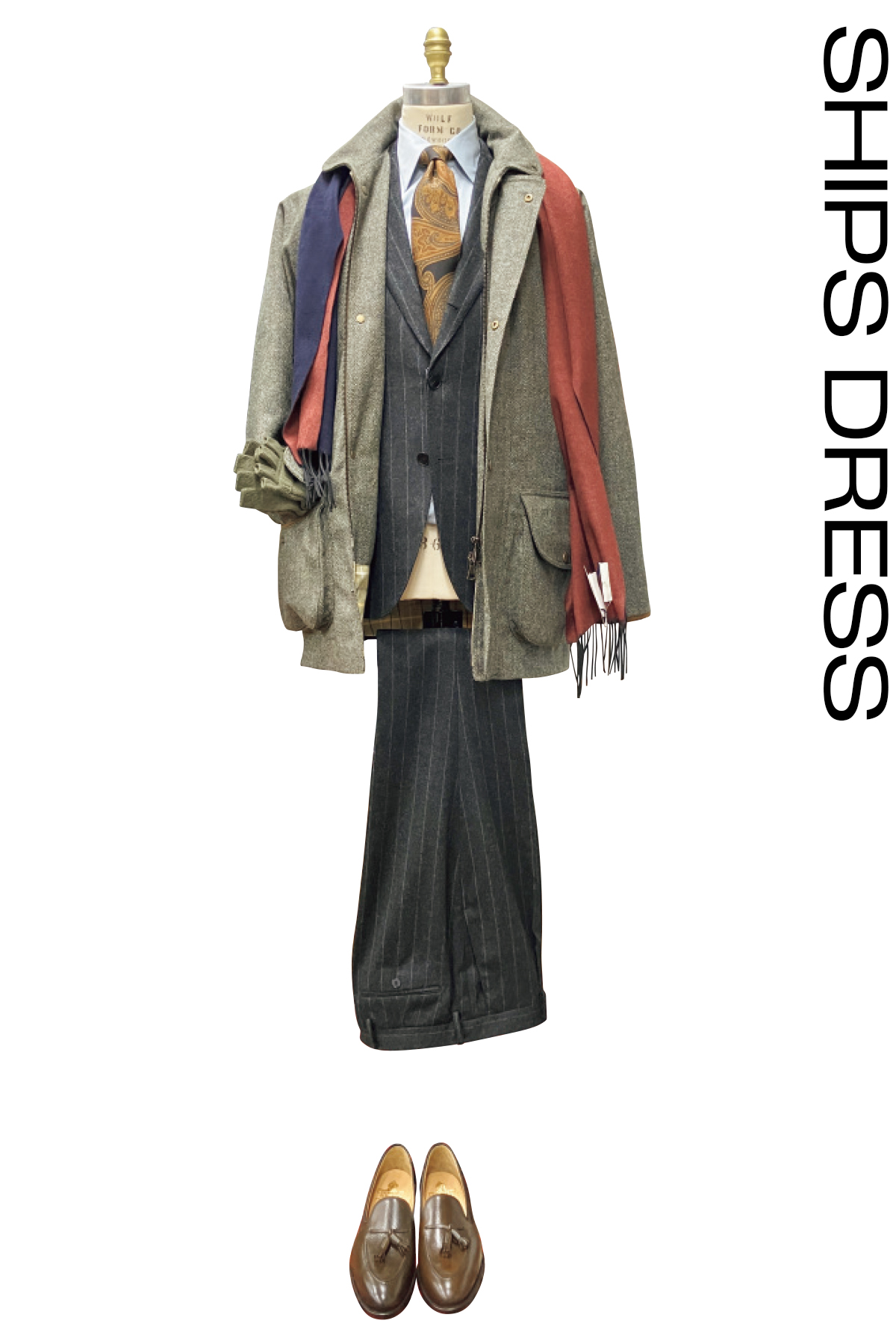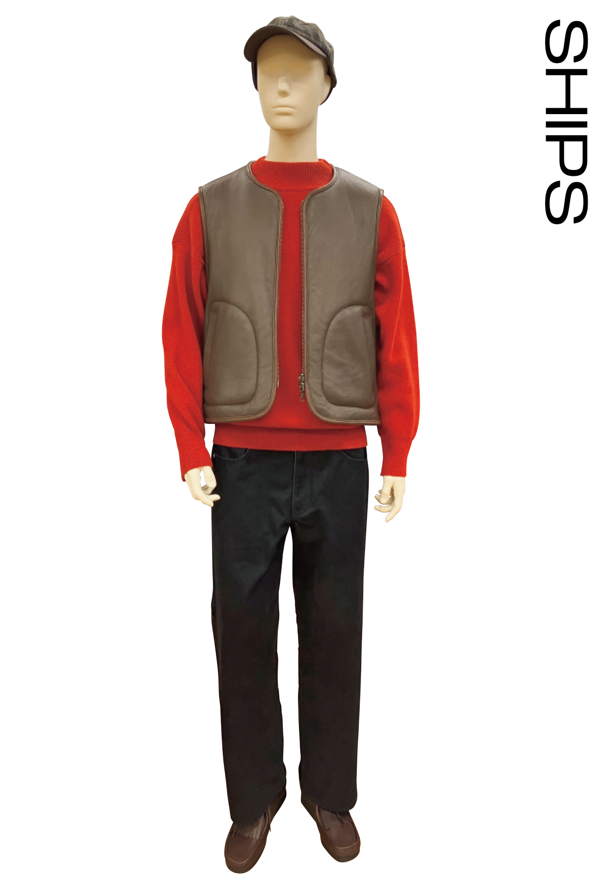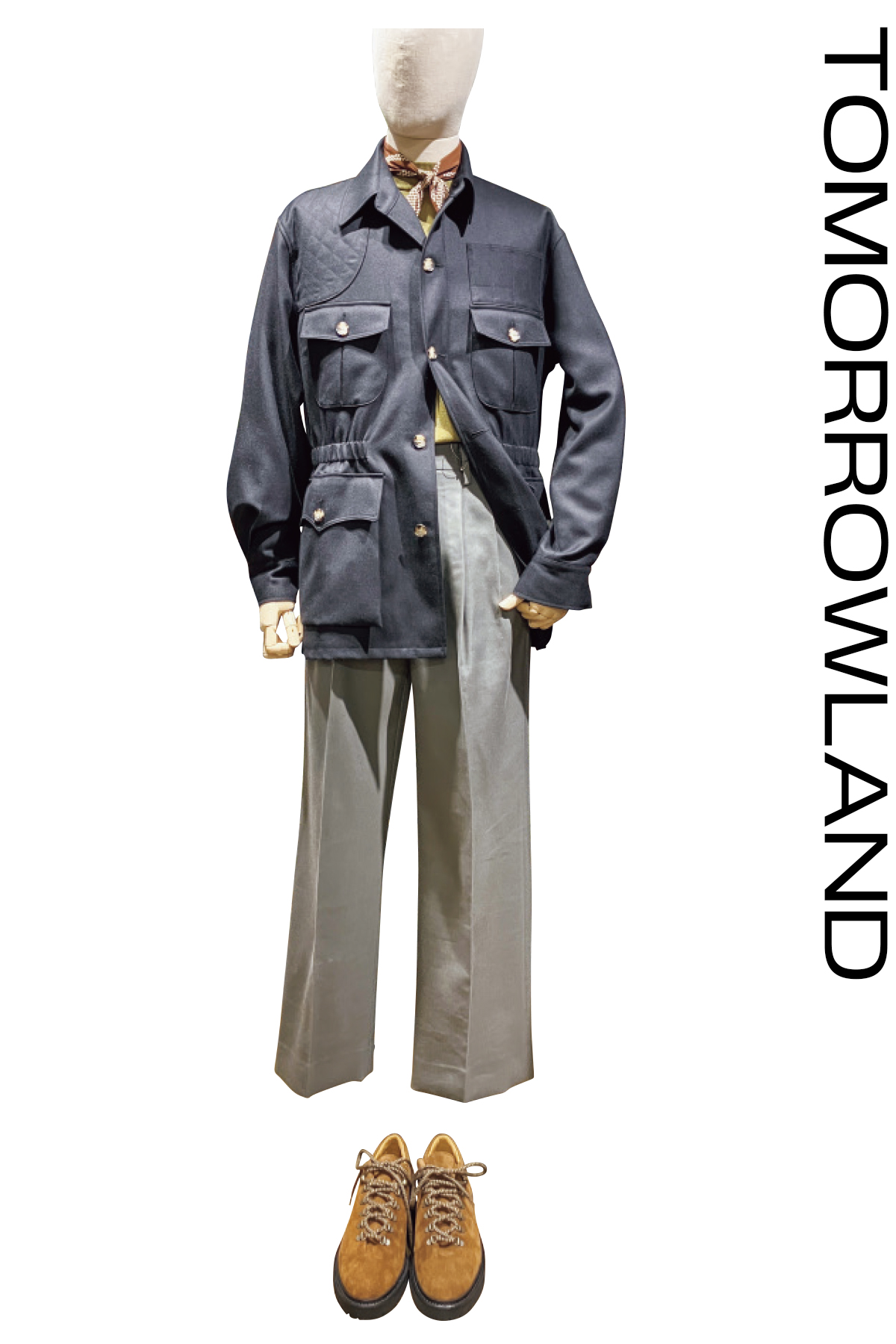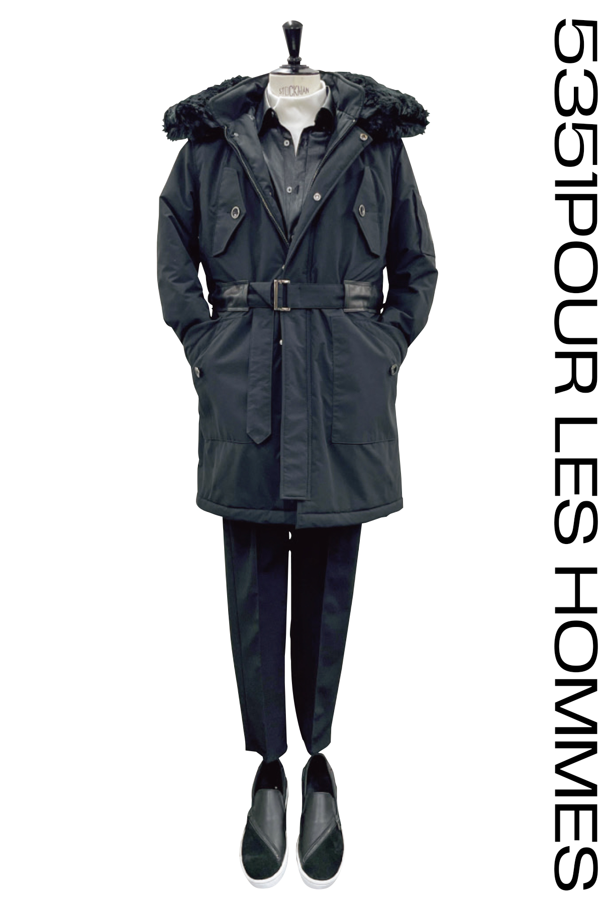 今季は、気温変化に対応しやすい“調温”を意識した軽やかなアウターをメーンに打ち出す。ピーコートは、ビーバー素材にカシミヤをブレンドし、コートというよりは軽い羽織りとして提案。合繊スタンドコートは、昨年の中綿ライナーからダウンライナーに変更した。ライナーを着脱できる仕様にすることで、暖冬から本格的な寒さまで対応する。