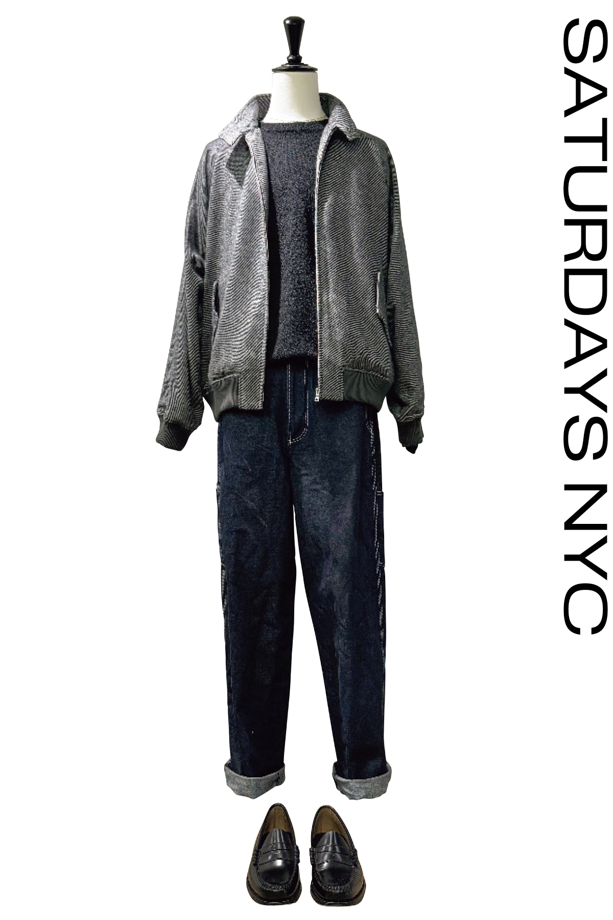 「パワー オブ ミュージック」をテーマに、シーズン前半はグランジロックなムードを反映したライダースやフロッキーデニム、ベロアのMA-1などのアイテムを用意。後半はムートンやコーデュロイ、ファーを取り入れたボーホーシックなリラックス感のあるスタイルを打ち出す。既存のワードローブに新鮮さを加えるような素材やトレンド感を意識している。