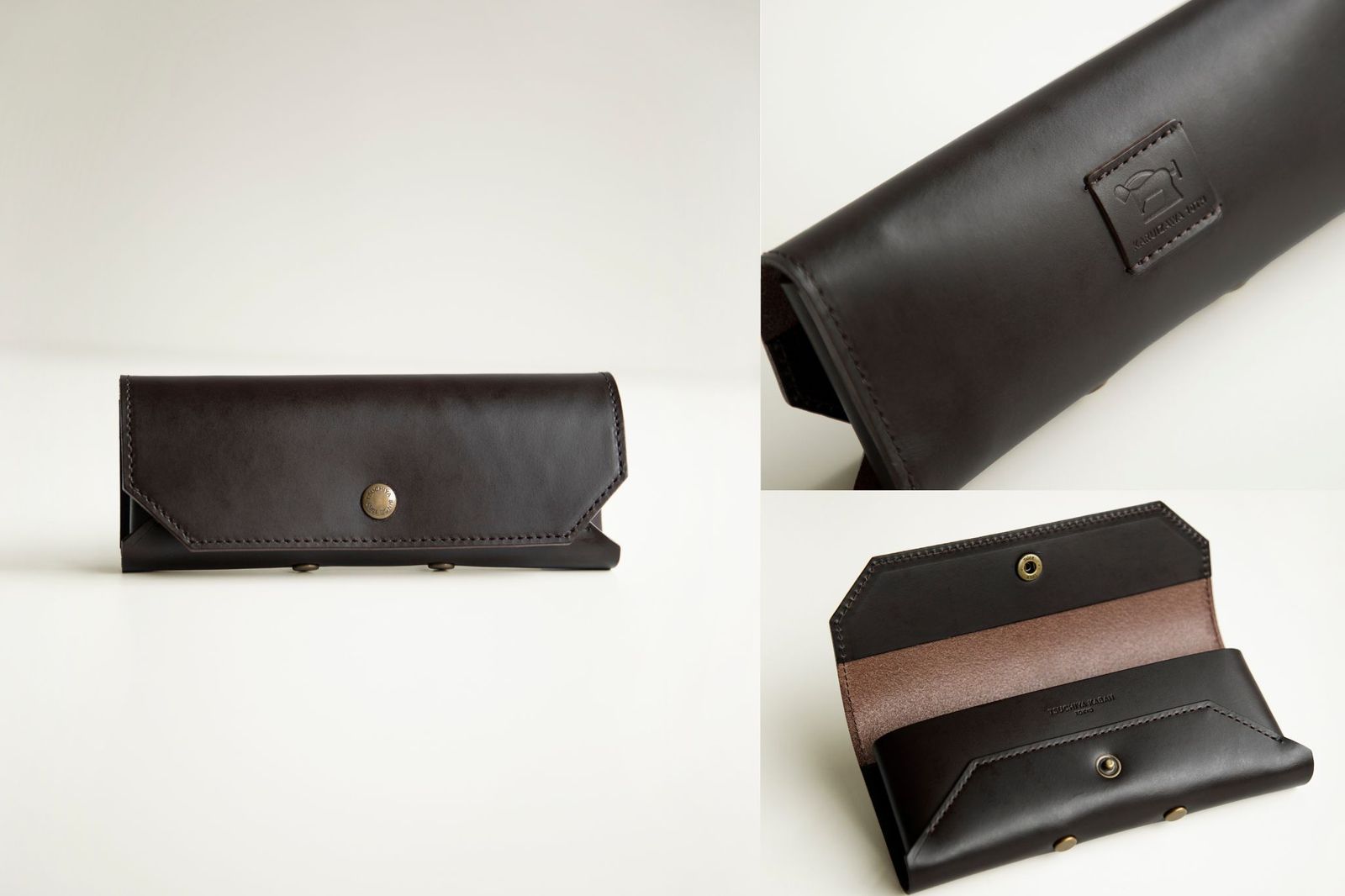 イベント期間中、軽井澤工房店で5万5000円以上購入するとオリジナルノベルティーの“眼鏡ケース兼ペンケース”を数量限定でプレゼントする。使い込むほどに艶が増すマロンブラック色のイタリア製ダブルバットレザーで仕上げ、背面に周年記念のミシンモチーフをあしらった。