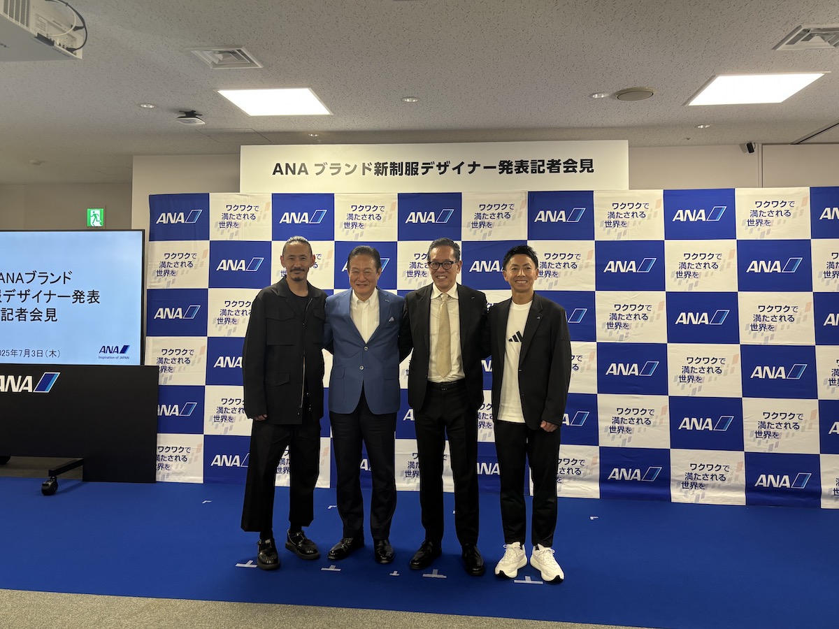 ANAは2027年、制服を一新する。7月3日の記者会見で、運航部門を「ナオキ・タキザワ(NAOKI TAKIZAWA)」の滝沢直己、接遇部門を「セッチュウ(SETCHU)」の桑田悟史、機能系部門を「アディダス(ADIDAS)」がデザインを担当することを発表した。