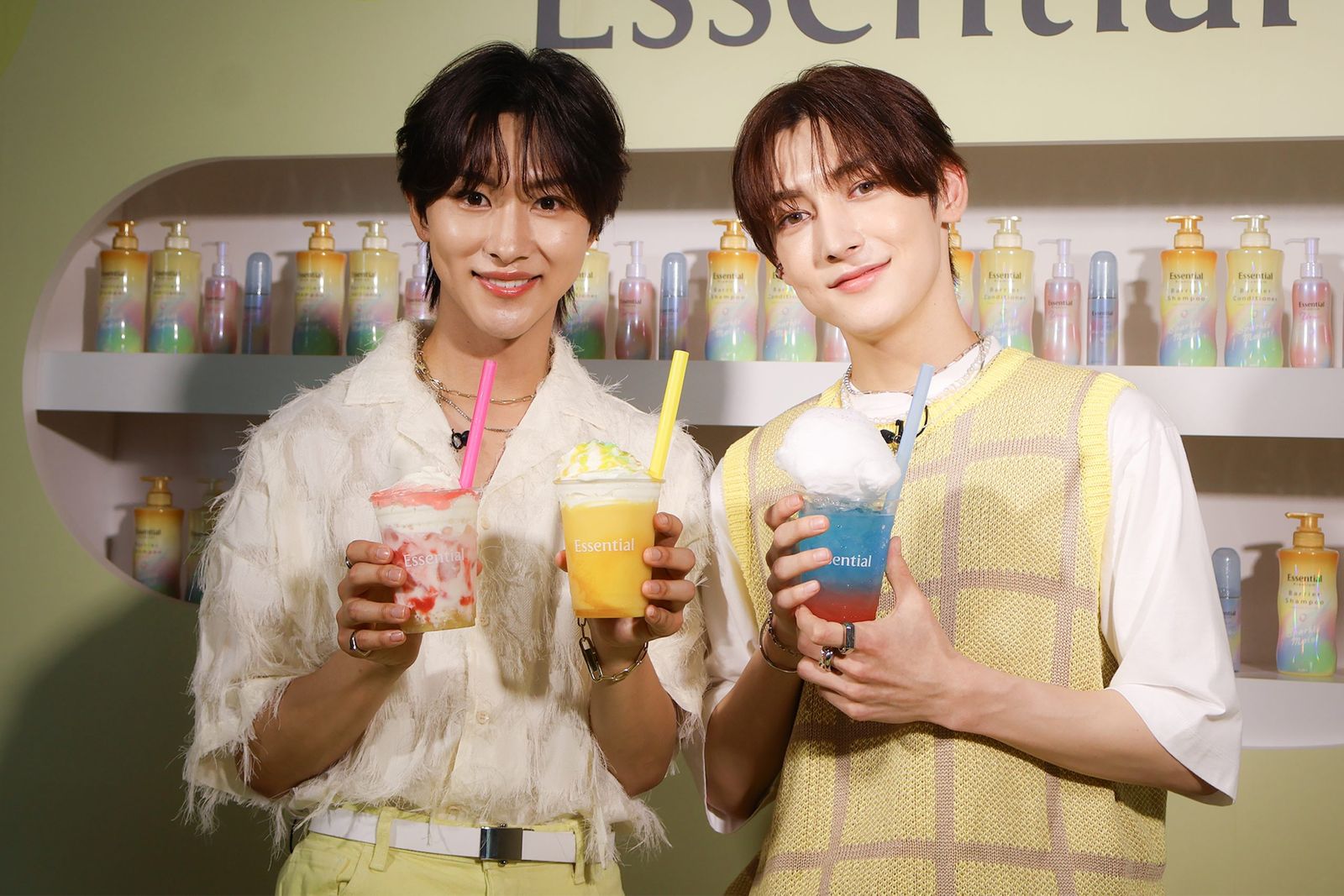 花王のヘアケアブランド「エッセンシャル(ESSENTIAL)」は7月24〜27日の期間限定で、新製品の世界感を楽しめる“エッセンシャル 新感覚カフェ”をゼロベース表参道にオープンする。これを記念し、お披露目発表会を開催。ウェブCMのイメージキャラクターを務めた、2人組音楽ユニットROIROM(ロイロム)の本多大夢と浜川路己が登壇した。2人の発表会登壇は今回が初で、イベント限定メニューの監修やCM撮影秘話についてトークした。