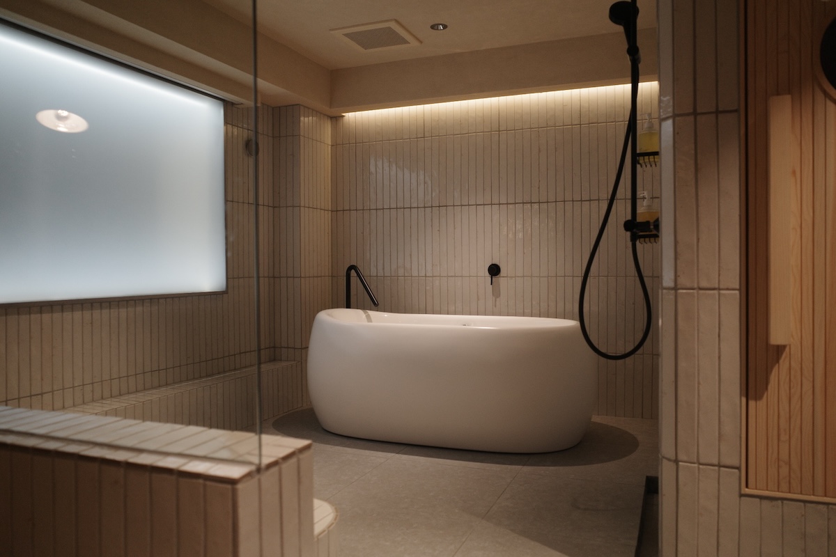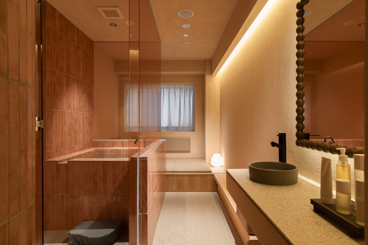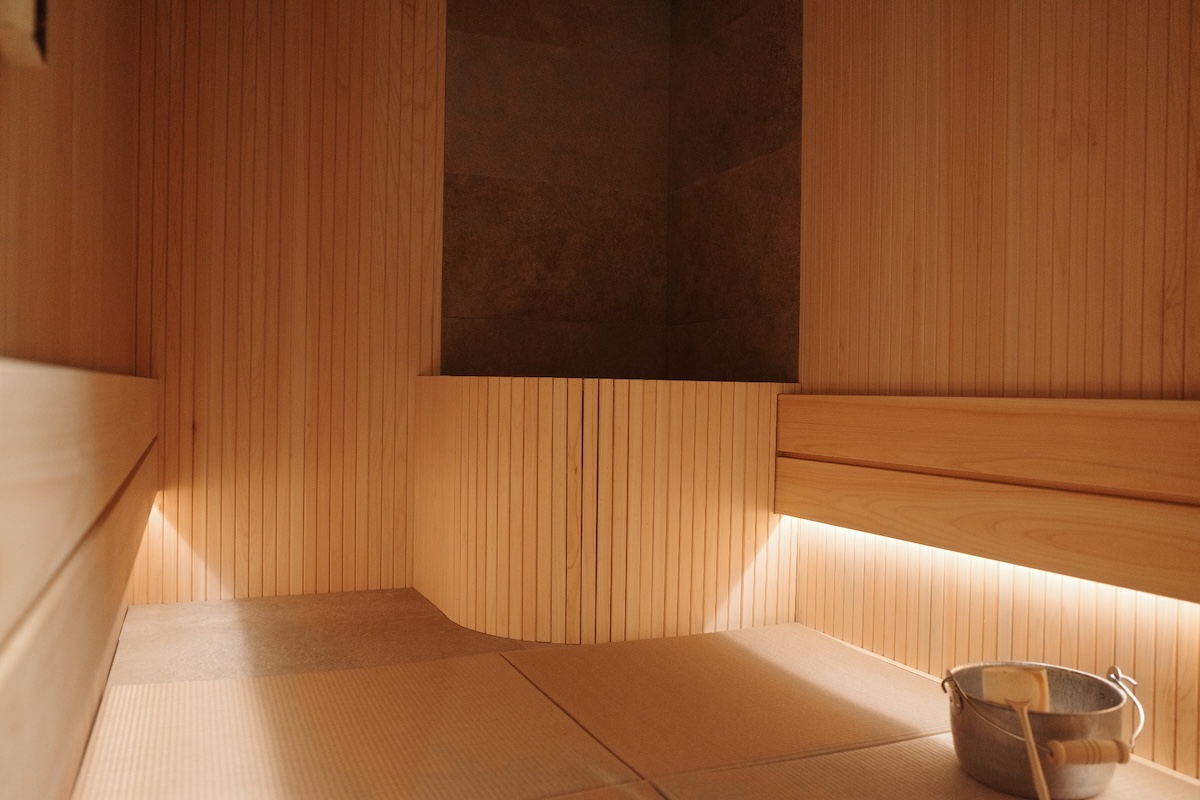 サウナ設備はBAUNA inc.が手掛けた。もともと大のサウナ好きである弦間潤子氏は師匠に弟子入りするように、その温度や湿度、喚起などのバランスを基本から学んだそう。4タイプのプライベートサウナや1室のみ展開しているサウナスイートもデザインだけでなく、設備や設定そのものが微妙に異なる。それを感覚的に表すネーミングも絶妙だ。