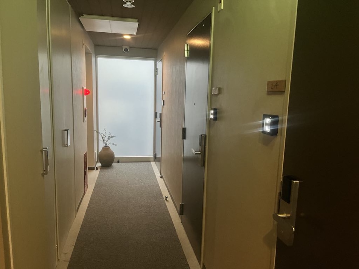 17時を過ぎ、そろそろ部屋へ。コリアンタウンの真ん中なので、とりあえず荷物を置いて汗を流そう。フロントらしきものはなく、そのまま2階の部屋へ。事前に送られてきたバーコードをかざすとすぐ開錠できた。