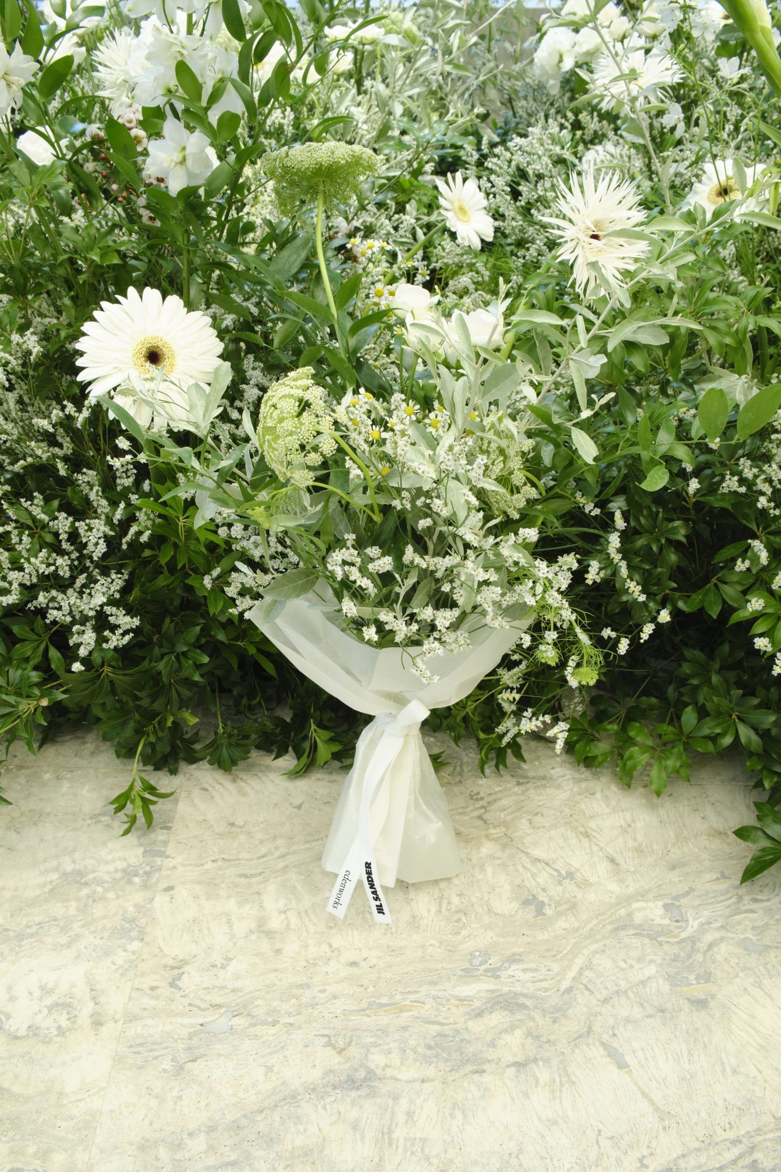edenworksは09年に篠崎が設立。「花を捨てずに未来につなげる」を理念に、クリエイションを手掛ける。「ジル サンダー」は、edenworksの自然への想いに共鳴し今回のイベントを企画した。コンセプトは「ワイルドフラワー」。都会の中で息づく生命を通して、自然と人間の共生、その関係性を問いかけるメッセージを込めた。
