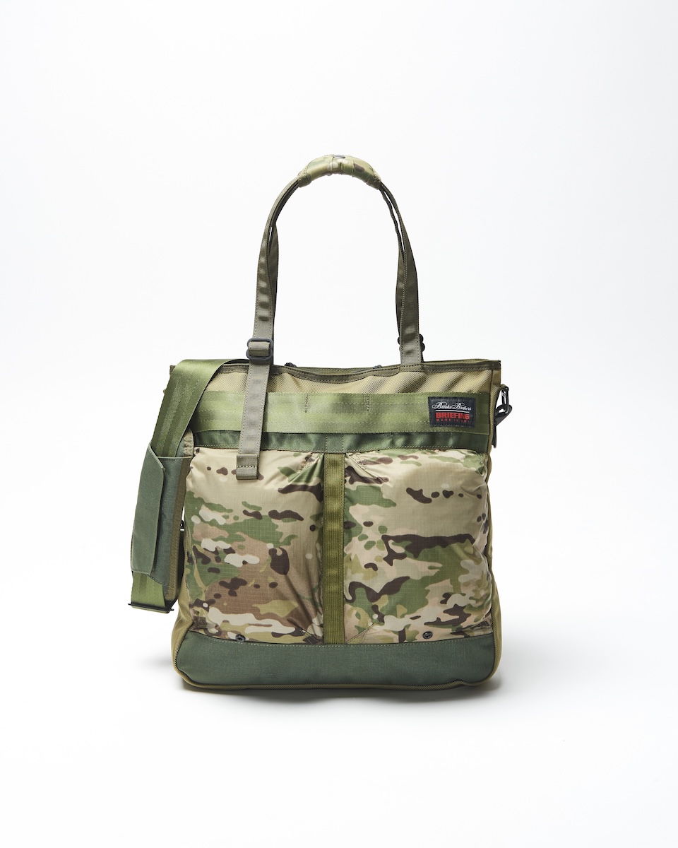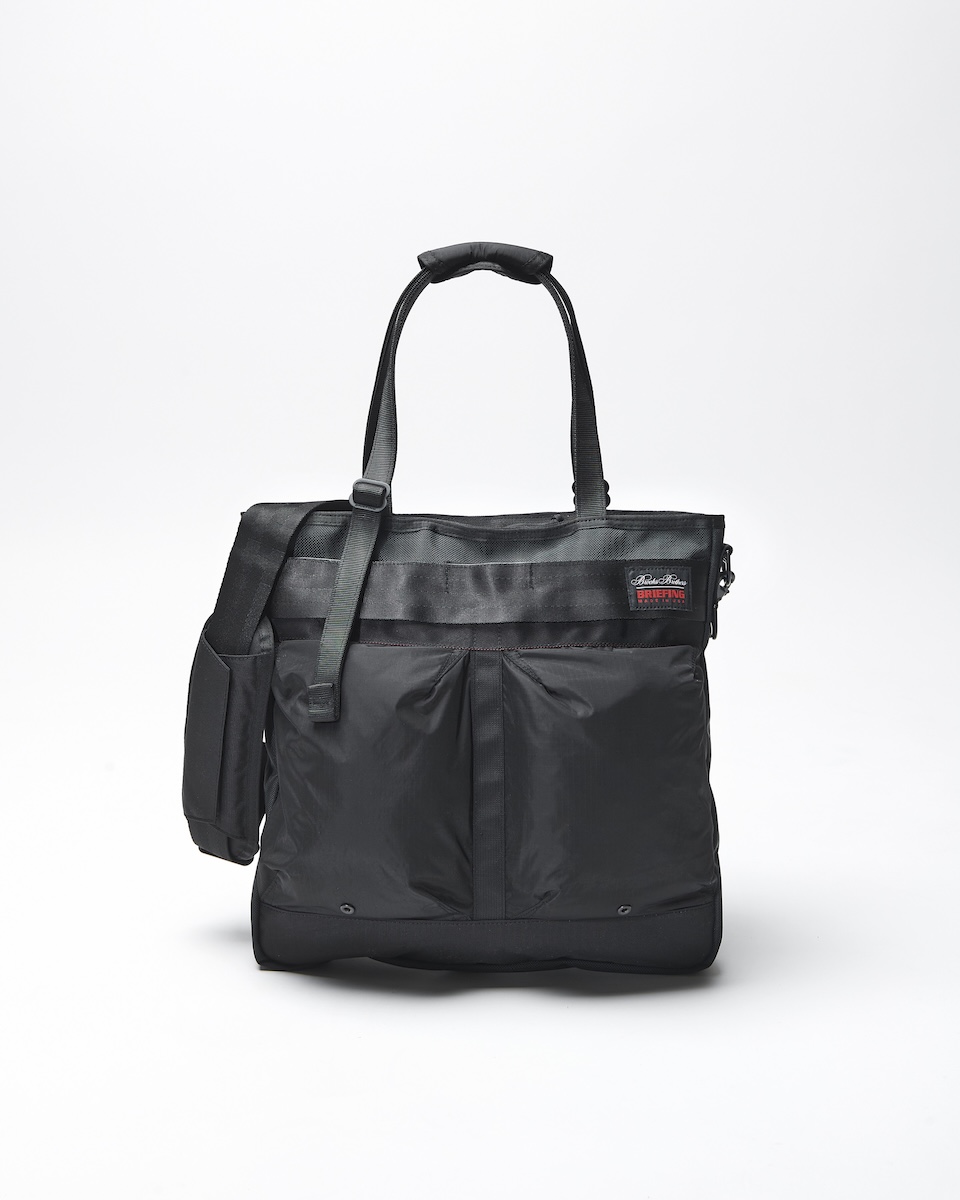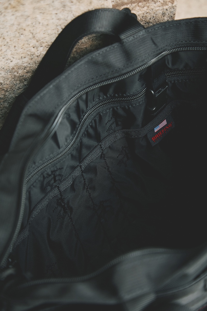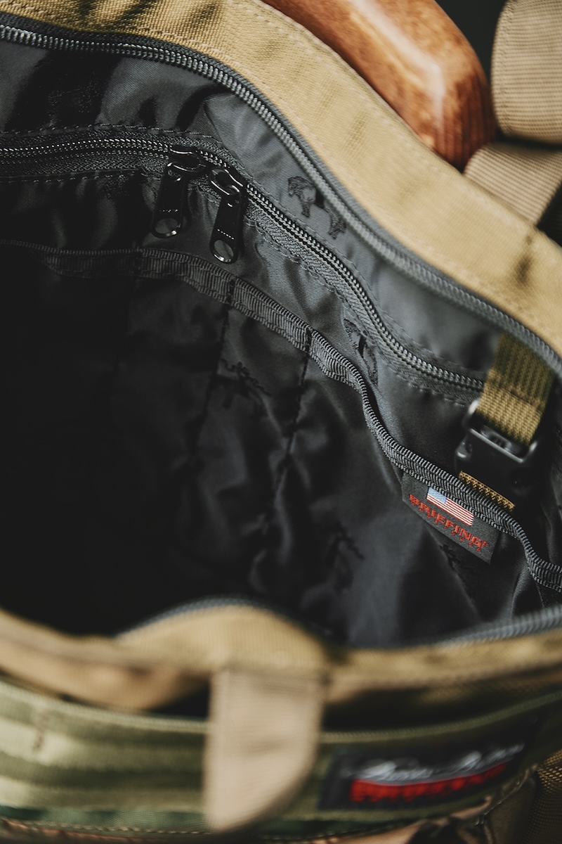 「ブリーフィング」の“ステルス”のボディーをベースに、「ブルックス ブラザーズ」のアイコニックなファンシャツに着想を得て異素材を組み合わせた。ヘルメットバッグの雰囲気は残しつつ、現代のライフスタイルに合うようPCスリーブやショルダーストラップを追加した。