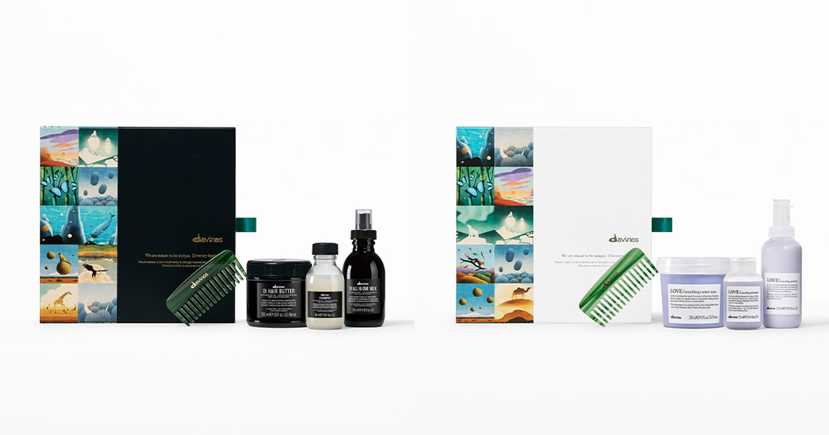 ヘアケアブランドの「ダヴィネス(DAVINES)」は、ヘアミルクやシャンプー、トリートメントコームなどを詰めたボックスを2種用意する。砂漠、海、山々、サバンナなど、さまざまな自然環境に生きる動植物をモチーフにしたパッケージデザインで、生物多様性の美しさを表現した。>記事の続きはこちら
