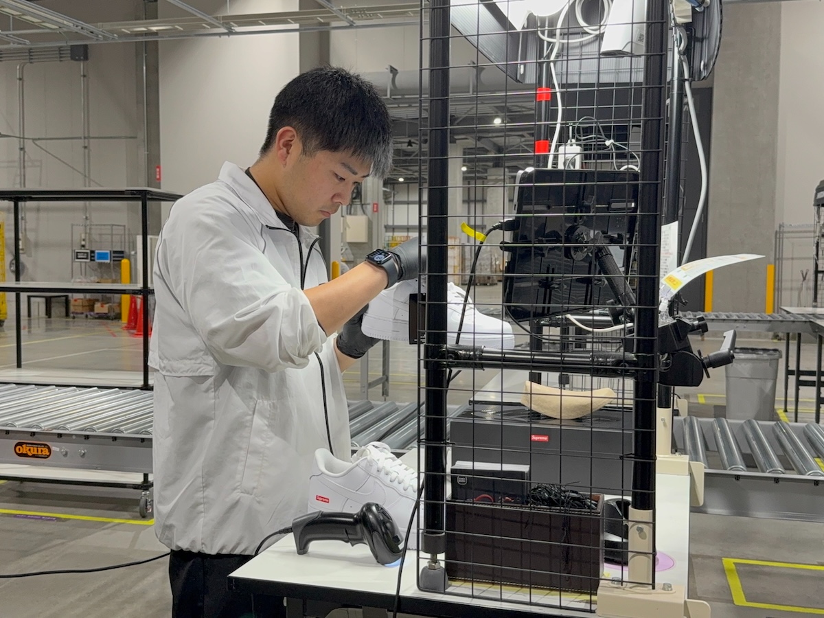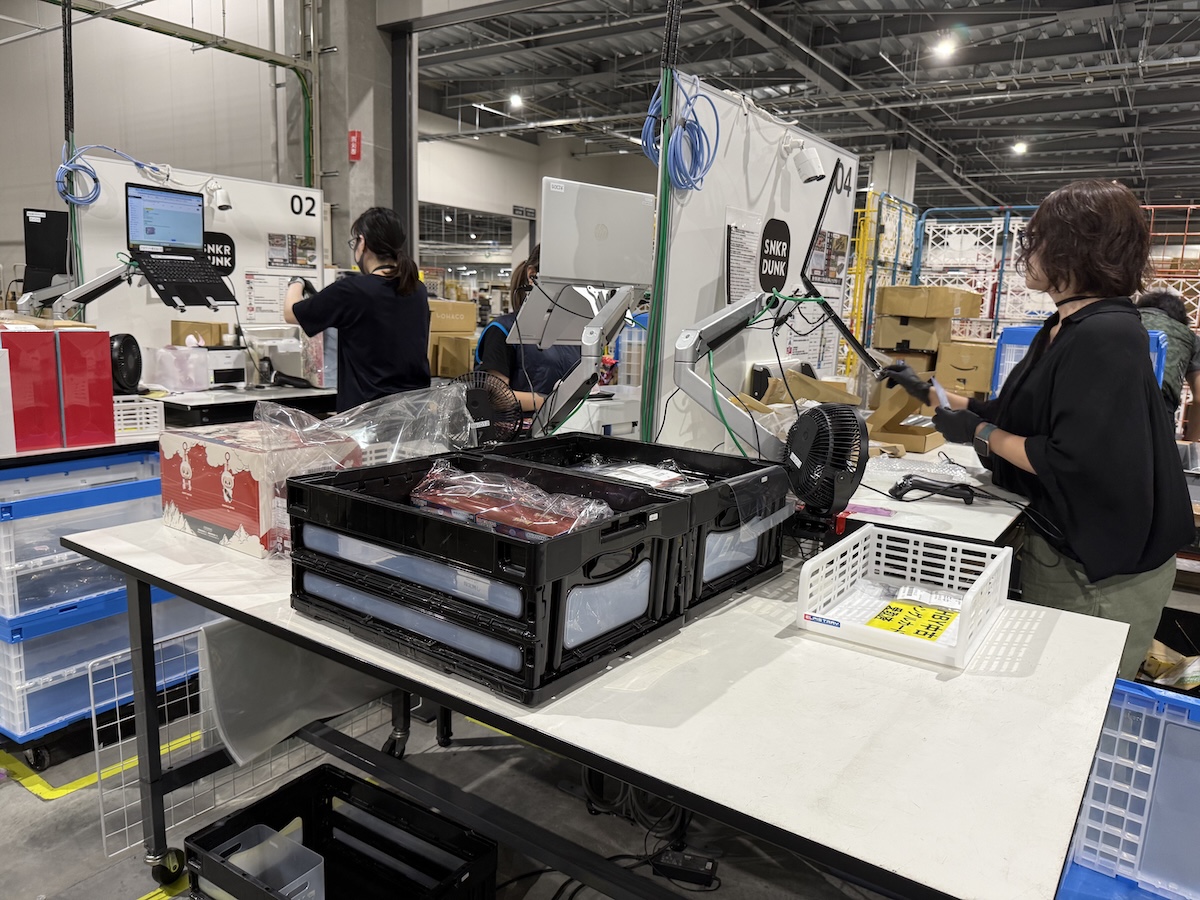 査定品には1〜5段階のレベルをつけていて、レアなものほど数字が高い。再販のないコラボ商品や限定商品、「シュプリーム」のボックスロゴ商品などがこれに該当する。鑑定士は、スニーカーショップの販売や鑑定の経験がある20〜30代が多い。それぞれの品は開封時にバーコードで管理され、それを読み取ることでパソコンに関連する独自の“見分けポイント”が表示される仕組みだ。鑑定士はこれらを基準にチェック。一人1日100〜200点を担うという。
