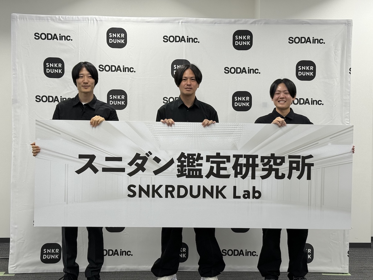 スニーカーフリマアプリ「スニーカーダンク(SNKRDUNK以下、スニダン)」を運営するソーダ(SODA inc.)は7月31日、偽造品に関する専門的な研究と技術開発を行う「スニダン鑑定研究所」(以下『鑑定研究所』)を設立した。東京・豊洲に構える同社の物流・鑑定拠点「スニダンベース」内に常設し、急増かつ巧妙化する偽造品への対応を強化する。この日、メディア向けに施設を全面公開した。