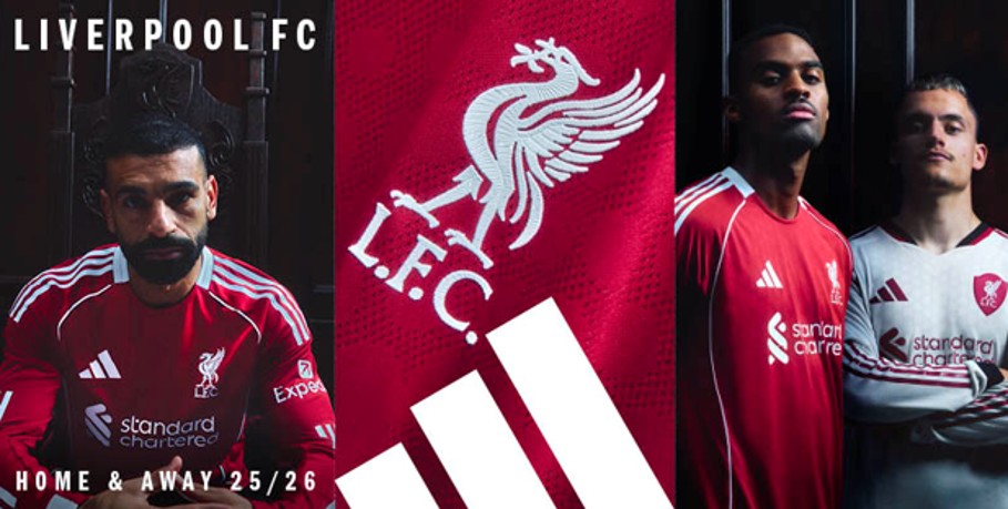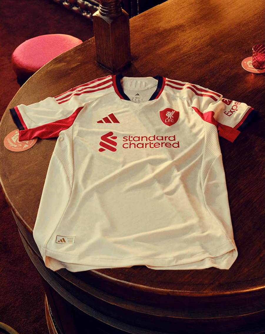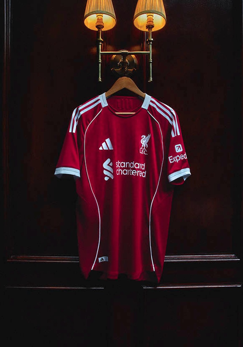 新しいホームユニホームは、深みのあるストロベリーレッドを基調に、クラブのDNAを最も純粋な形で表現したデザインだ。袖にはホワイトのスリーストライプ、胸元にはクラシックなリバーバードのクレストをあしらい、クルーネックの襟元と袖口のリブは現代的でアスレチックなシルエットを演出する。ショーツやソックスもレッドで統一し、ソックスにはスリーストライプと“LFC”のロゴが施されている。アウエイユニホームは、過去のアウェイキットを彷ふつとさせるクリームオフホワイトをベースに、ブラックとレッドをアクセントカラーにしたデザインだ。クレストはリバーバードを盾の中に配置し、1906年のアンフィールドのメーンスタンドに着想を得たシルエットで再構築した。ショーツとソックスは各2型を用意。ブラックショーツとオフホワイトソックス、オフホワイトショーツとブラックソックスの組み合わせが選べる。なお、それぞれの全アイテムラインアップは、「アディダス」オンラインショップでチェックできる。