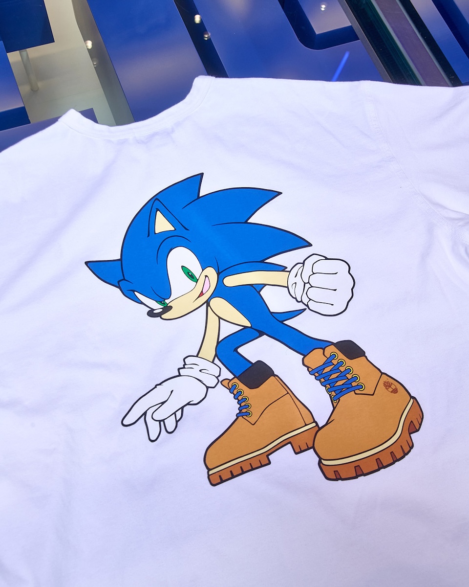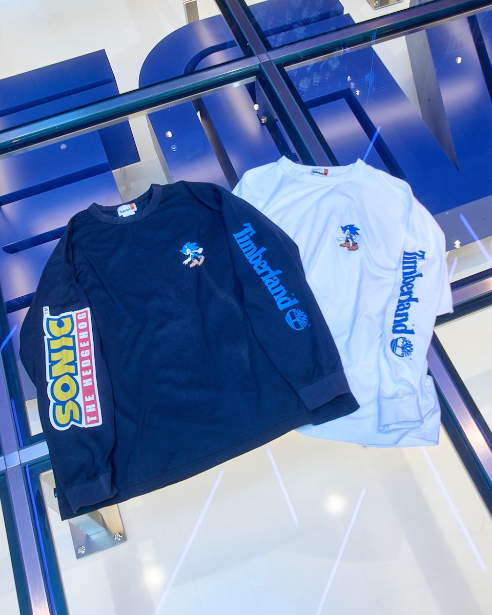 「ティンバーランド」のアイコンモデル“イエローブーツ”は、特別仕様のソニックをヒール横とハングタグに刻印し、シューレースにはソニックを彷ふつとさせるコバルトブルーを採用することで、遊び心と存在感を兼ね備えた1足に仕上げた。長袖Tシャツは、ソニックを左胸にワンポイントであしらい、右腕にソニックシリーズのタイトルロゴを、左腕にコバルトブルーのティンバーランドロゴをデザイン。半袖Tシャツには、ソニックを大胆にバックプリントし、左胸にタイトルロゴとブランドロゴを配置した。Tシャツはどちらも、ハーフラバープリントを採用したビンテージライクなホワイトカラーと、フロスト加工でタフに着用されたかのようなフェード感を再現したブラックカラーを用意する。また同アイテムを購入すると、非売品のポストカードとオリジナルステッカーが付属する。なお、付属は数量限定のため、なくなり次第終了となる。