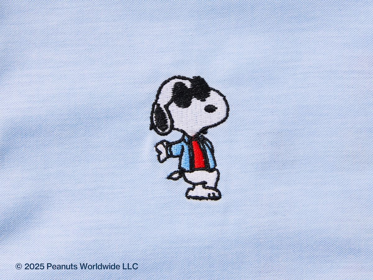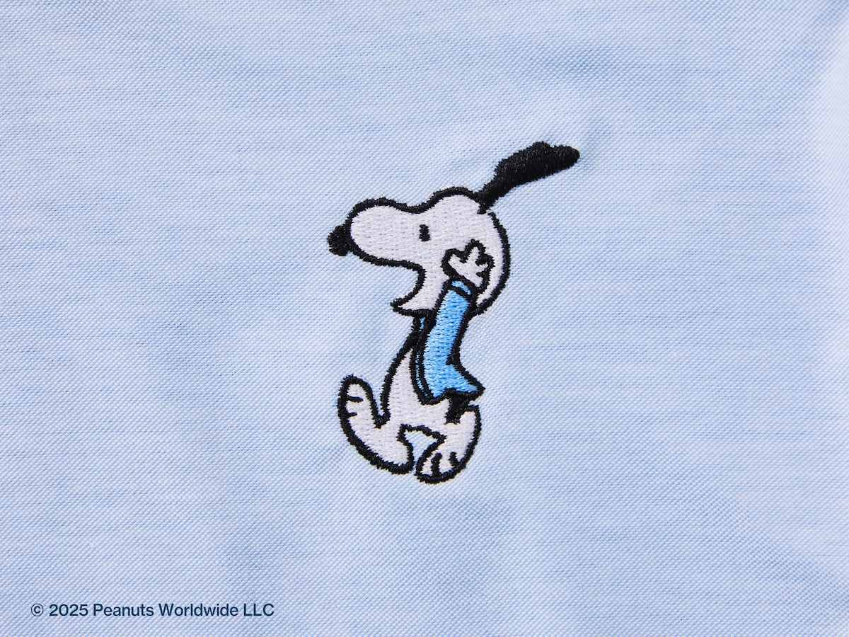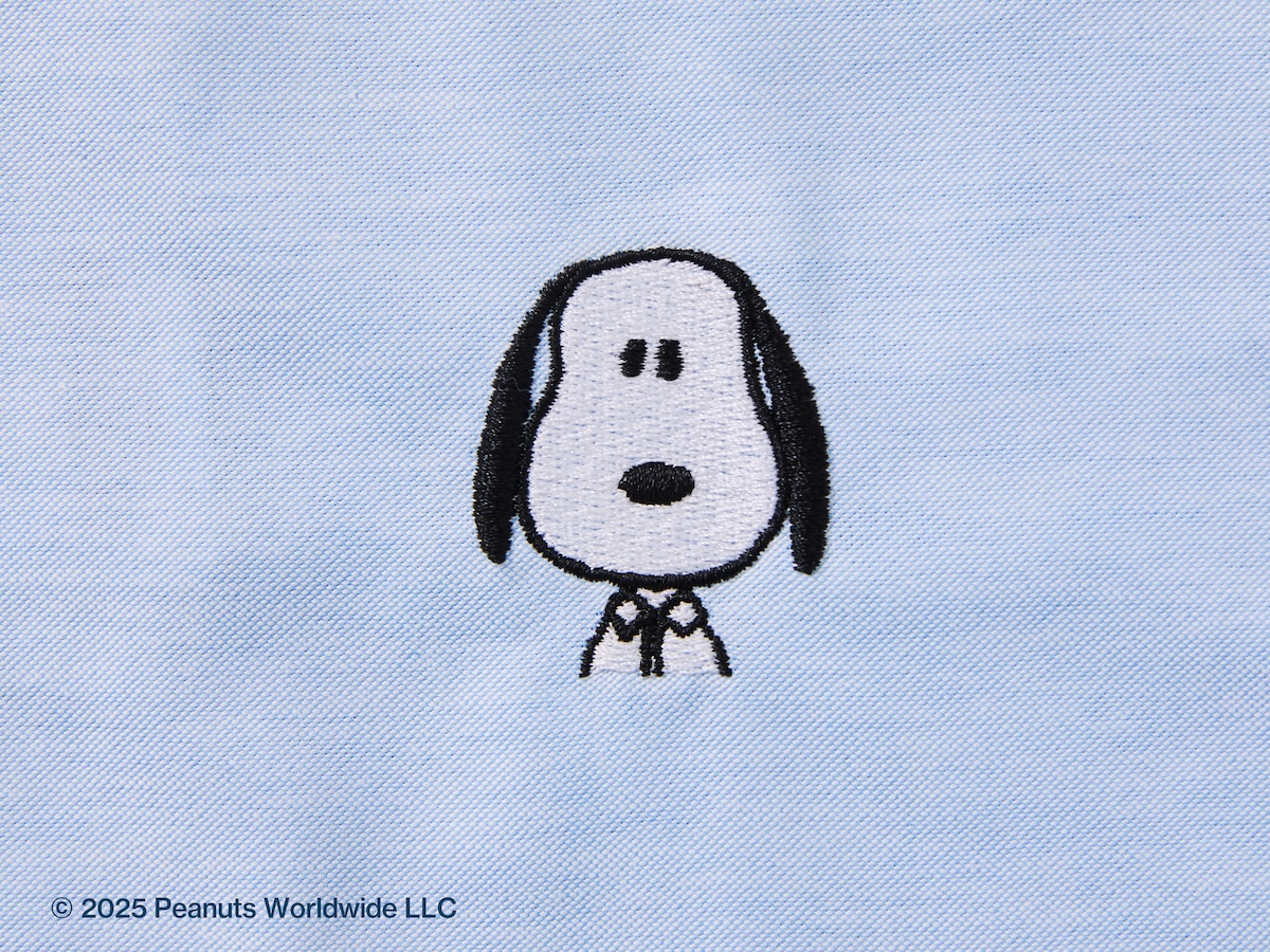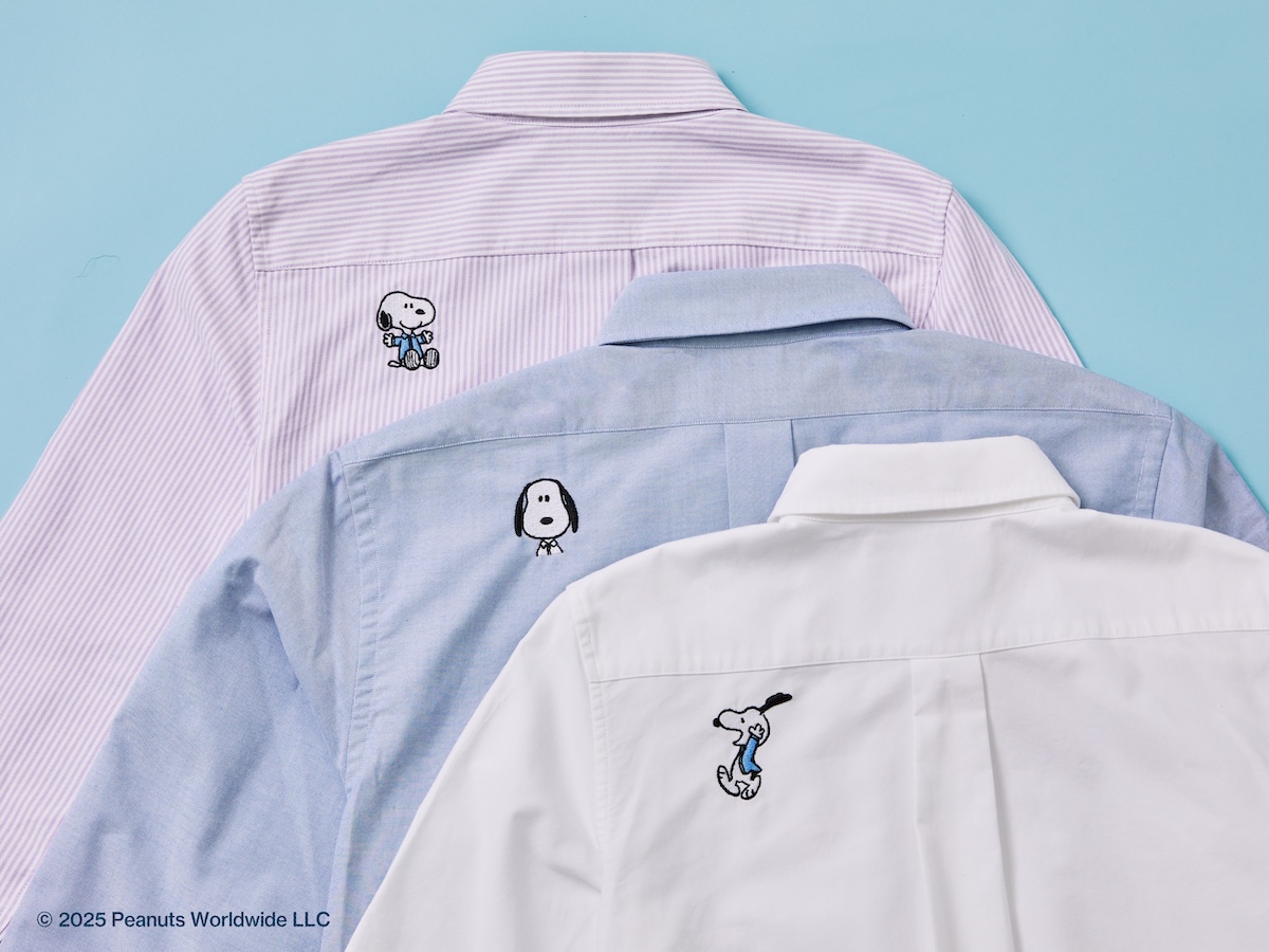 本サービスでは、対象のボタンダウンシャツを購入するとスヌーピーの刺しゅうを入れることができる。デザインは全4種の展開で、それぞれ店舗限定のものも用意する。刺しゅう位置は3箇所の中から選ぶことができる。