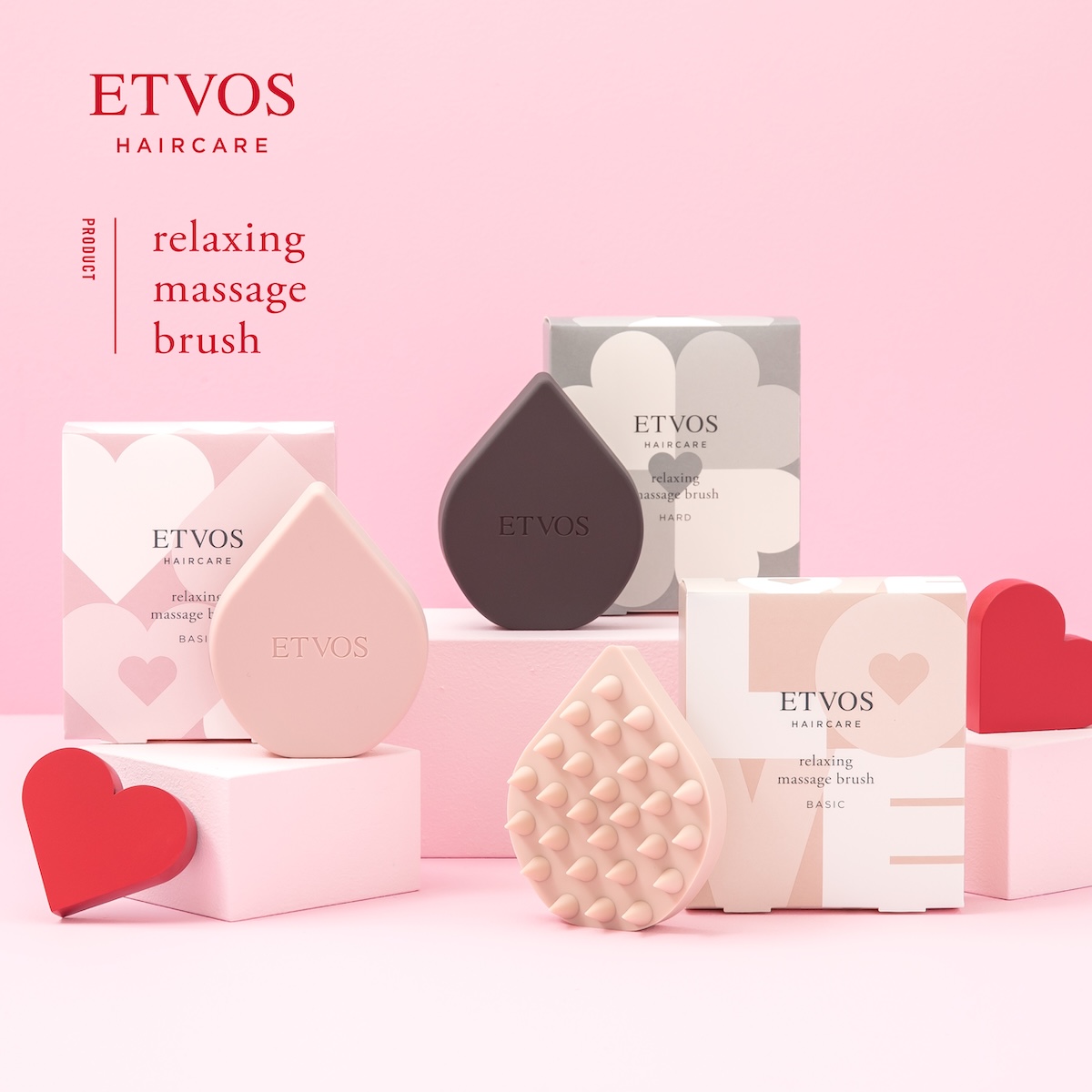 人気の“リラクシングマッサージブラシ”と“リラクシングマッサージブラシ ハード”は、限定色とギフトパッケージで登場。多くのツボが集中する頭皮を程よく刺激するしなやかな突起が特徴で、気持ち良い肌あたりの硬さに設計した同アイテムは、ホリデー限定のミルクを思わせる“ホワイトモカ”、やわらかな“ハートピンク”、おしゃれ感が漂う“チャコールグレー”(ハード)の3色で用意する。ギフトデザインは、ハートやラブのモチーフをやわらかなトーンでデザインした。