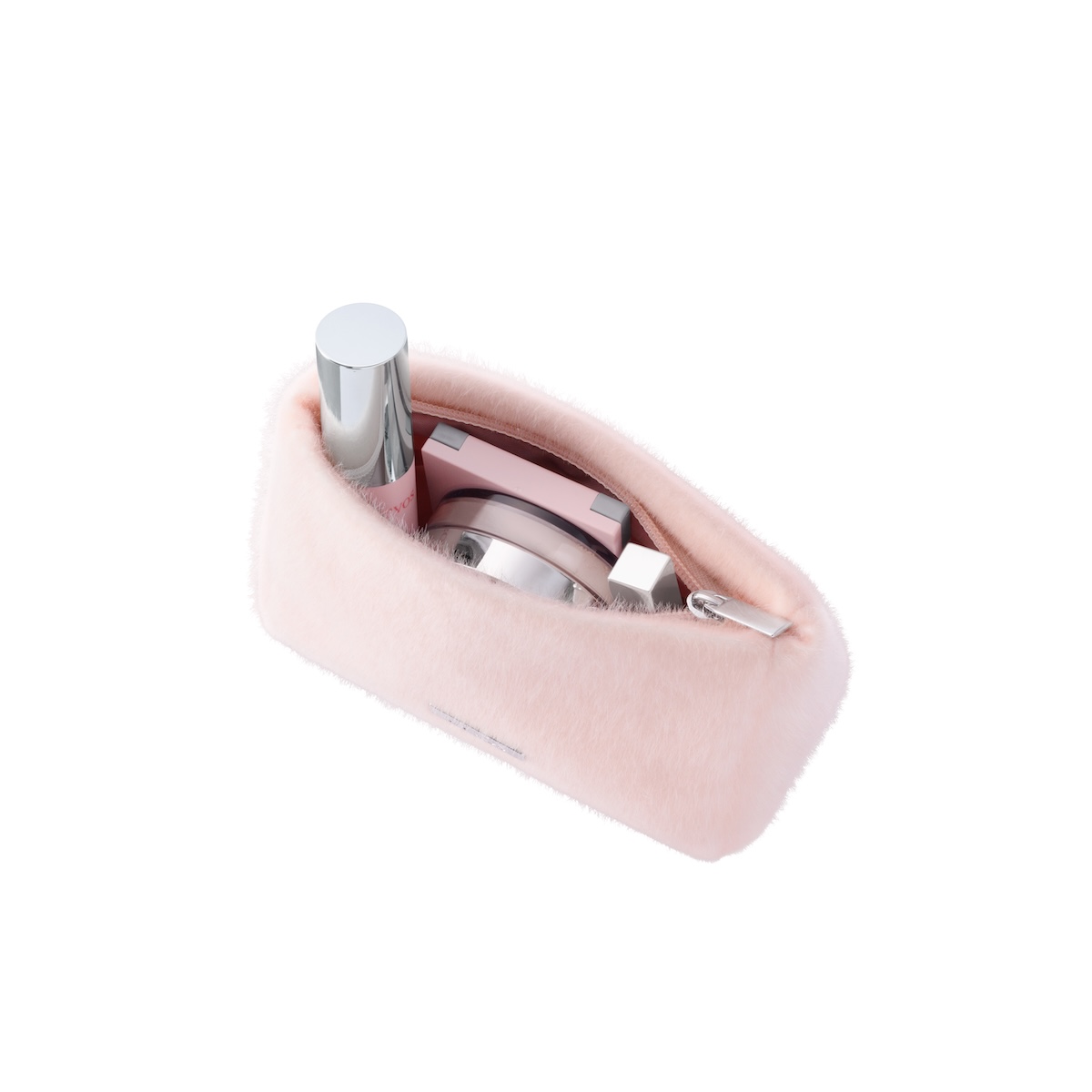ピンクとシルバーを基調としたメイクアップアイテム