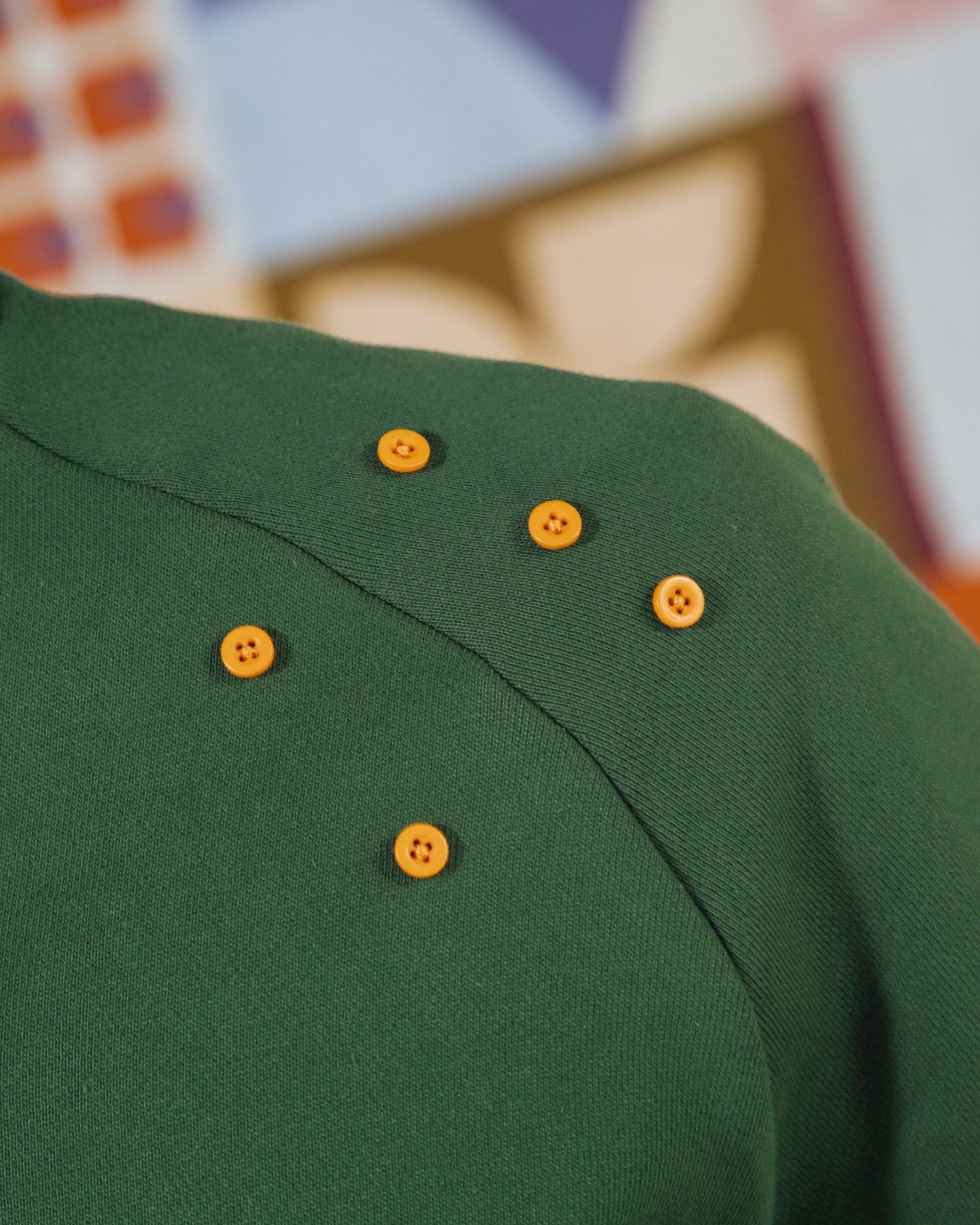 今回のラインアップの中でも注目は、フォーマルなダブルジップカーディガン(1万4000円)だ。随所に取り外し可能なワッペンが付いており、ライブ会場でだけでなく、普段使いとしても。ボタンはオレンジを採用し、ワッペンを外しても映えるデザインに仕上がっている。MとLの2サイズ展開で、ウエスト部分にはシルエットを調節できるボタンが付いている。