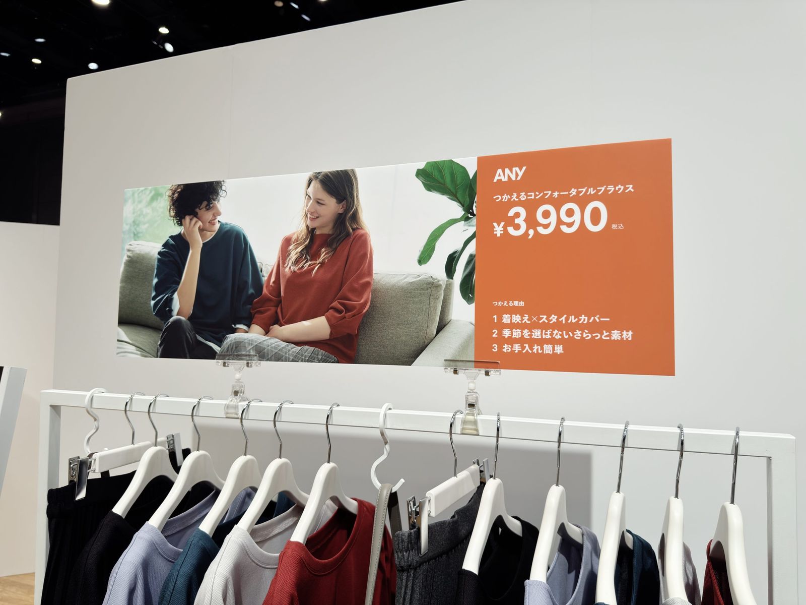 そのような考えのもと、“手に届く、高品質を、この価格で。”を新たなブランドキャッチコピーに据えた。「これまでオンワードのブランドは世界観やムードを謳うことはあれど、“価格”のお得感をここまでハッキリと伝えるのは初めて」という。商品名も“使えるコンフォータブルブラウス”や“使えるビューティパンツ”といった、価値がダイレクトに伝わるものに刷新。店頭POPでも「1. 美脚見えシルエット」「2. センタープレスできれい見え」「3. お手入れ簡単」といった具合に、商品ごとのストロングポイントを3つ明記する形式を徹底する。さらに、SNSでの話題作りを狙った雑貨・アクセサリーの展開や、キャラクターIPとのコラボレーションなども積極的に打ち出していく。