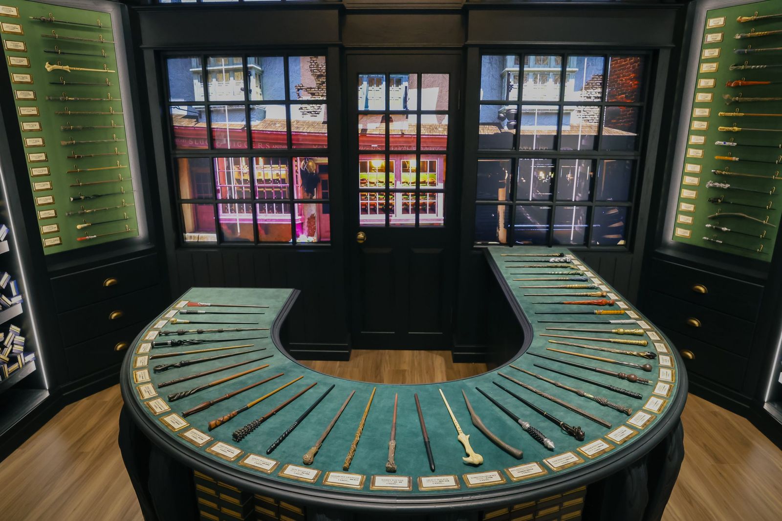 その横には、ショップスタッフがあなたにピッタリの魔法の杖を提案してくれる「ワンド ショップ」も併設。全40種の魔法の杖をそろえており、映画の中でキャラクターが使用していたモデルはもちろん、魔法動物をイメージしたオリジナルの杖も展開している。