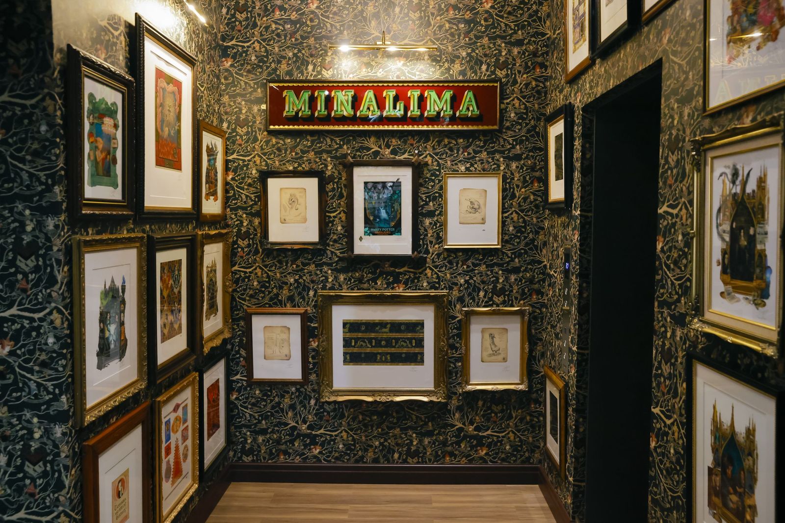 2階のコーナー「ミナリマ」には、「ハリー・ポッターとアズカバンの囚人」で登場するキーアイテム“忍びの地図”などのグラフィックを手掛けたグラフィックデザインスタジオ、ミナリマの作品が並ぶ。エレベーター前の壁にはミナリマの絵が飾られており、「ハリー・ポッター ショップ 原宿」のために描いたオープン記念作品もある。実際に足を運んでチェックしてみて。