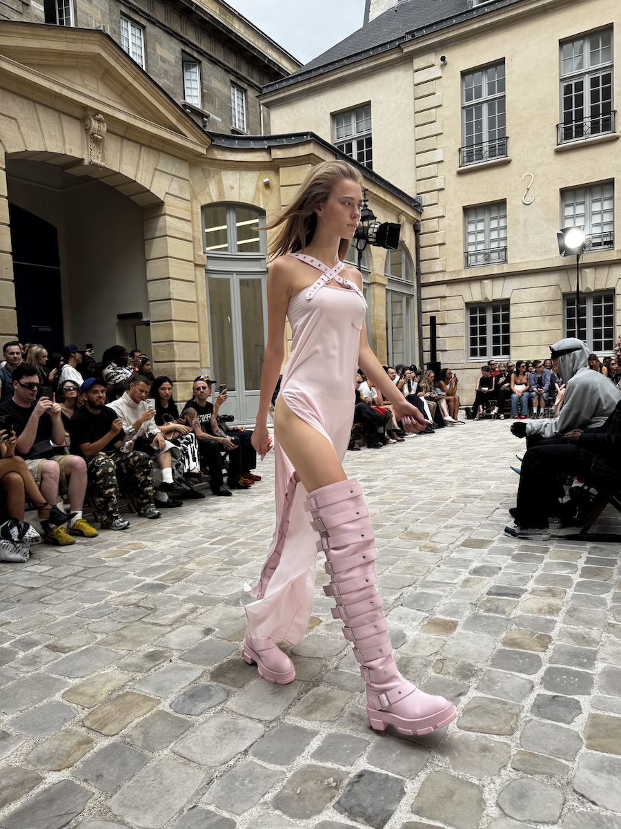 本橋涼介「WWDJAPAN」ヘッドリポーター(以下、本橋):「ジャンヌ フリオ(JEANNE FRIOT)」と聞いて、ピンとくる読者の方は少ないかもしれません。2026年春夏コレクションは、すべてのモデルをLGBTQIA+キャストで構成したランウエイで始まりました。ラメのピンク、タイダイ、チェック、スリット、オールデニムといった予定調和的でないディテール(この中でディテールと呼べるのは、スリットだけかと)からは、感情の濃淡がありありと伝わってきて、キッチュなかわいさの中に「社会に対する意志」が同居していたように思います。