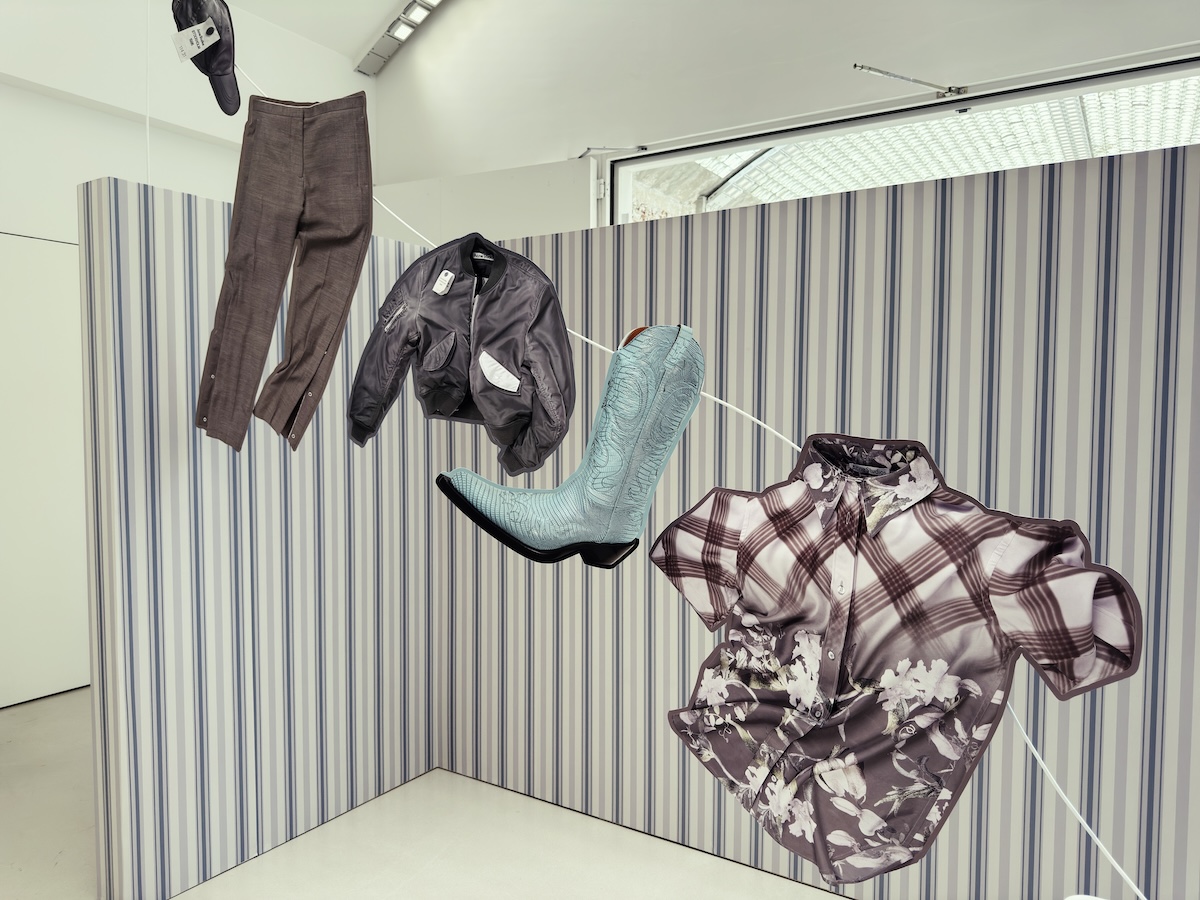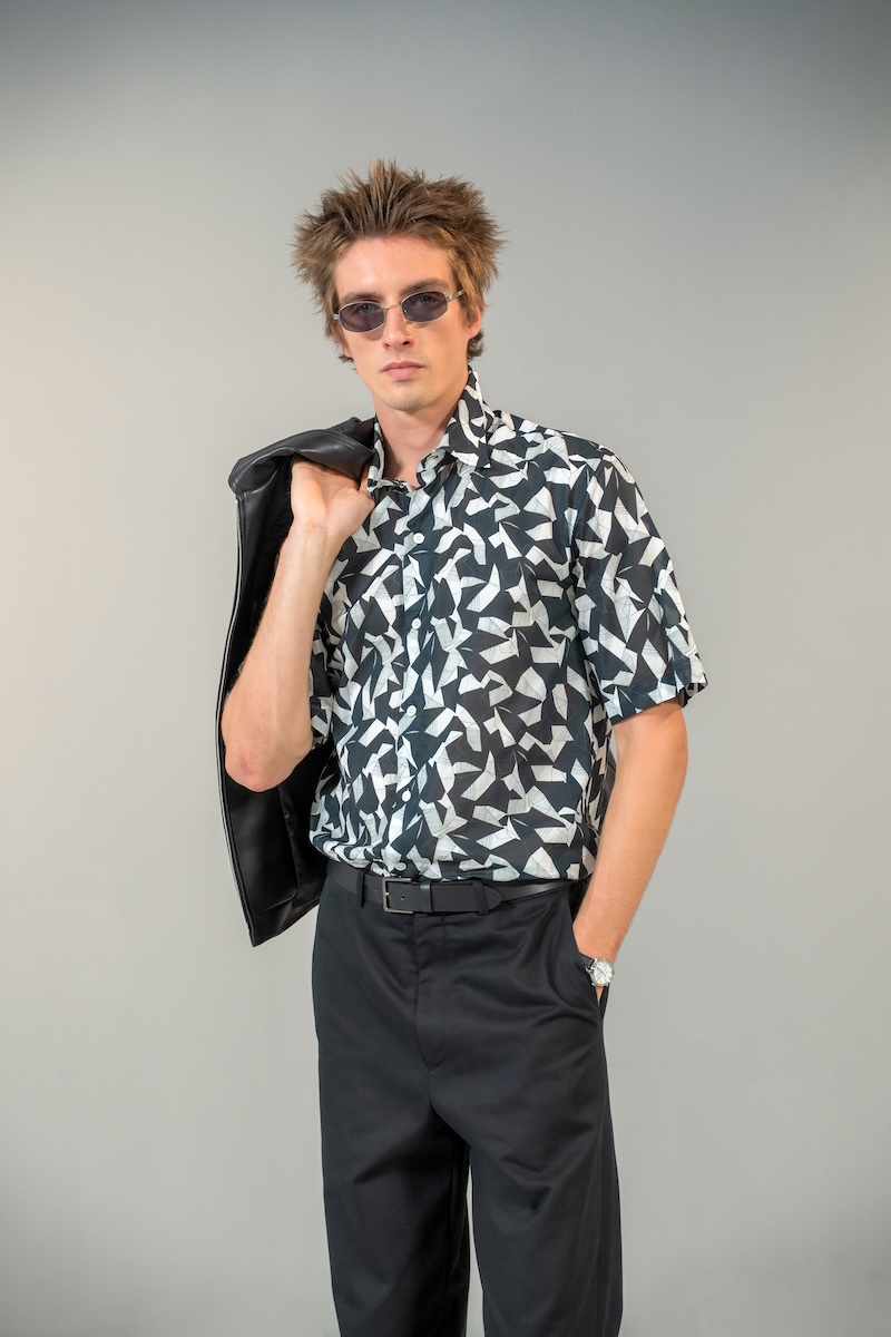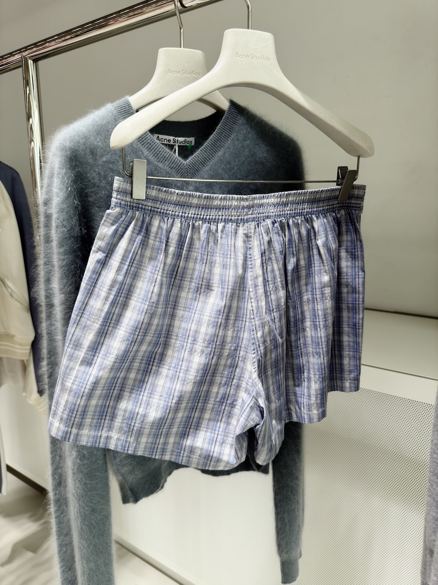完璧さを求めず、気負いのないテイストミックスや即興的なレイヤードが今の気分にぴたりと重なります。大学生が履いていそうなトランクスを思わせるストライプ柄のボクサーショーツやタイトなストライプシャツ、レザーのセットアップやダスティーな加工ジーンズ。清潔感とユルさ、辛味のバランスが絶妙です。