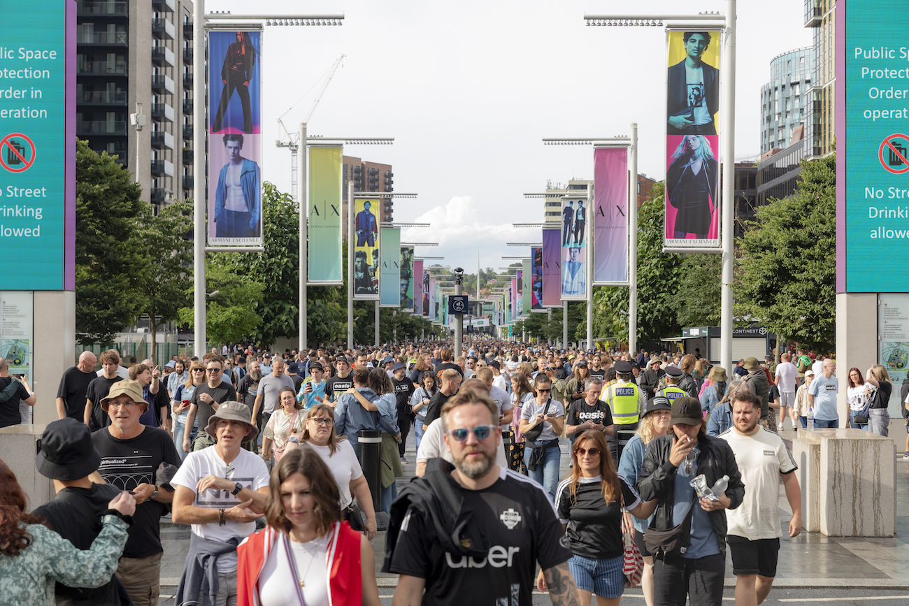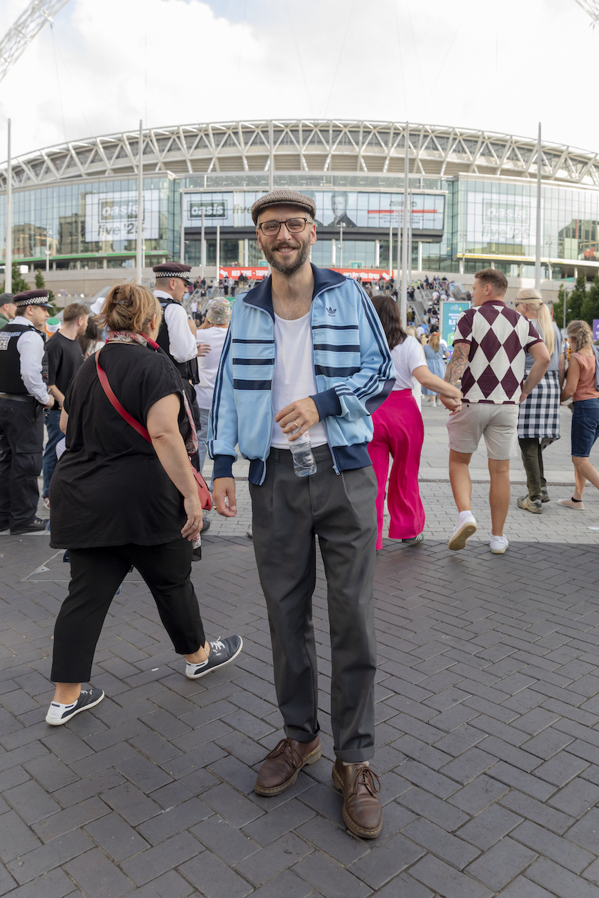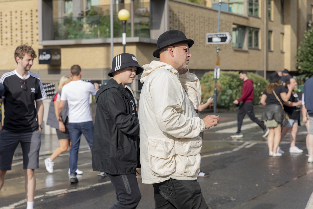 今回、8月3日(同時間)に行われたロンドン公演でストリートスナップを敢行。会場の「ウェンブリー・スタジアム(Wembley Stadium)」周辺には、17時開場の数時間前から30~50代の男性を中心に老若男女の幅広いファンが集まり、その大半が公式マーチャンダイズを着用していたのが印象的だ。