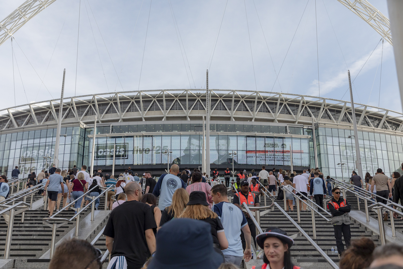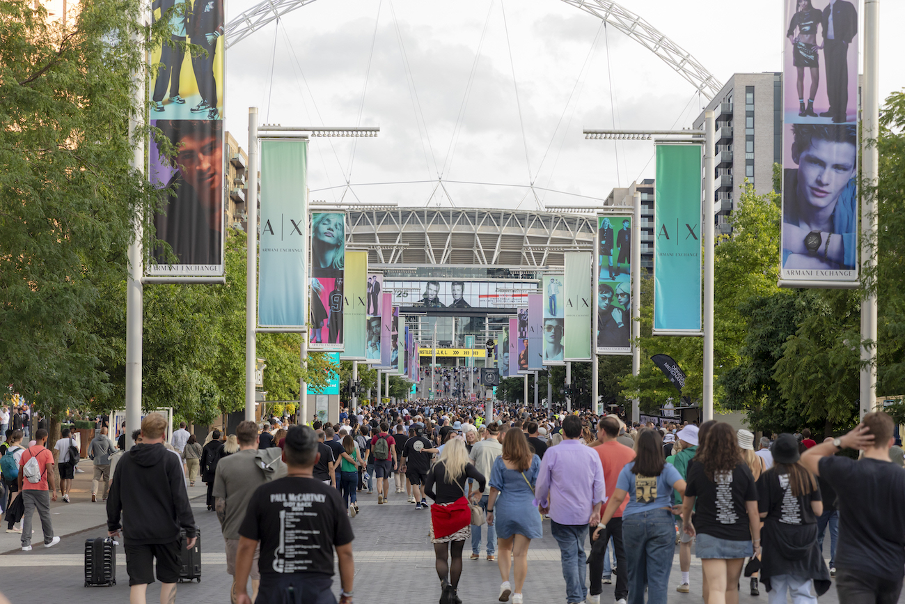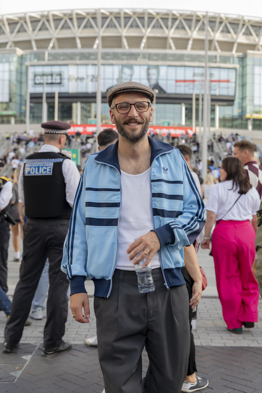 今回、8月3日(同時間)に行われたロンドン公演でストリートスナップを敢行。会場の「ウェンブリー・スタジアム(Wembley Stadium)」周辺には、17時開場の数時間前から30~50代の男性を中心に老若男女の幅広いファンが集まり、その大半が公式マーチャンダイズを着用していたのが印象的だ。