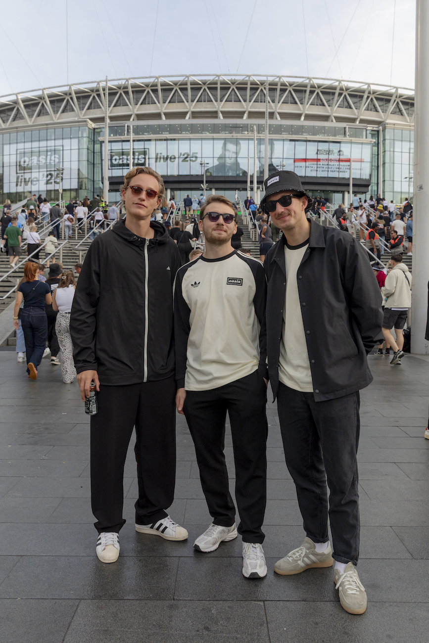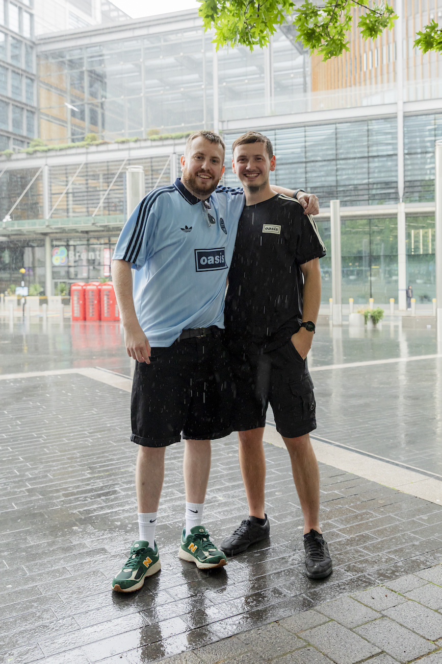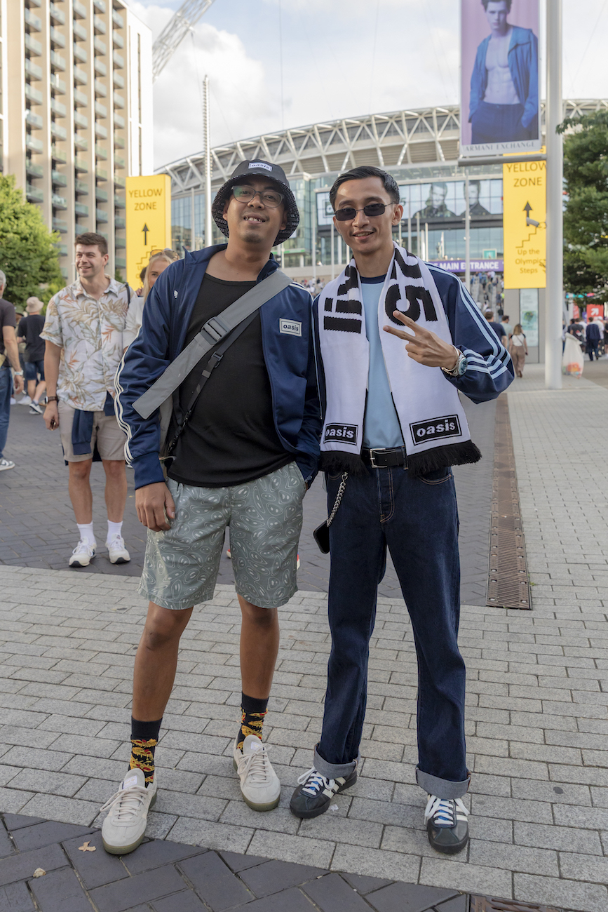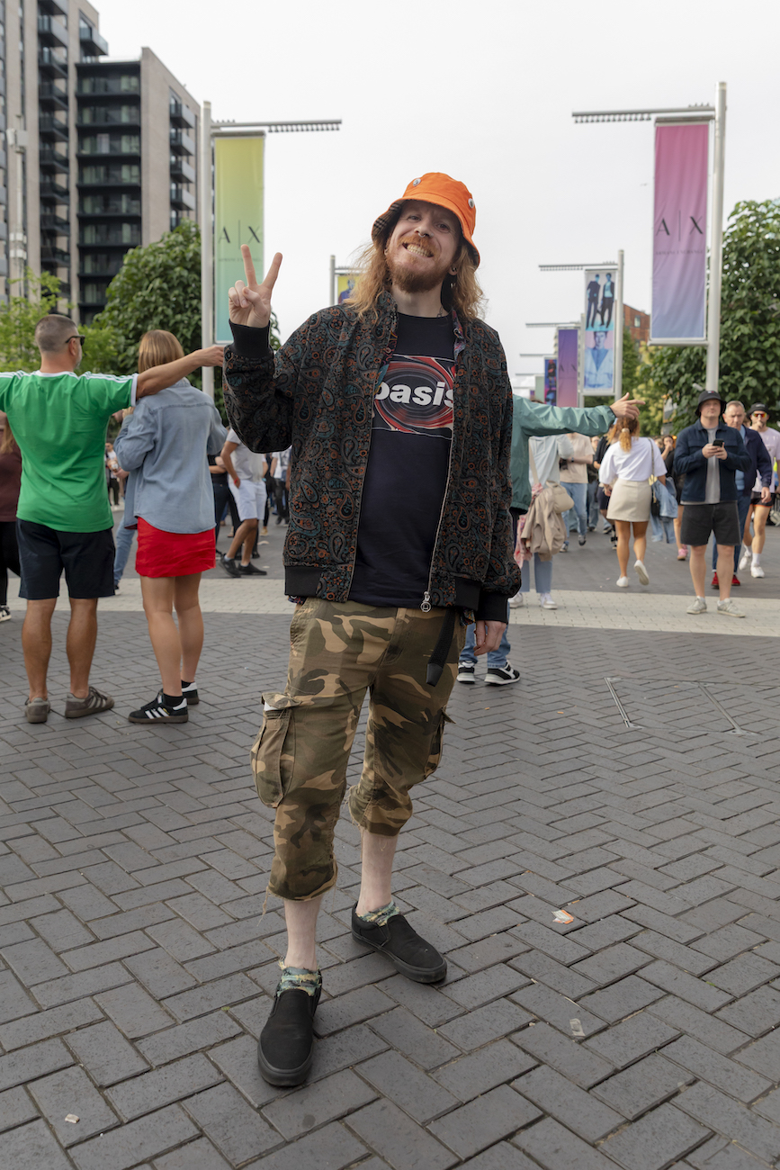 そして、上記の公式マーチャンダイズをベースとしたブロークコア風のスタイルを中心に、リアムが手掛けるブランド「プリティー・グリーン(PRETTY GREEN)」のアイテムやビンテージのオアシスTシャツ、さらにはギャラガー兄弟のコスプレを楽しむファンも。また、“カジュアルズ”と呼ばれる「ストーンアイランド(STONE ISLAND)」もしくは「C.P. カンパニー(C.P. COMPANY)」を取り入れた服装を楽しむ人々も散見され、音楽プロデューサーのジェイムス・ブレイク(James Blake)もその1人だった。