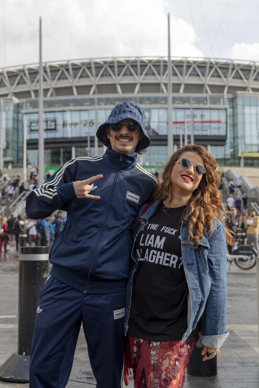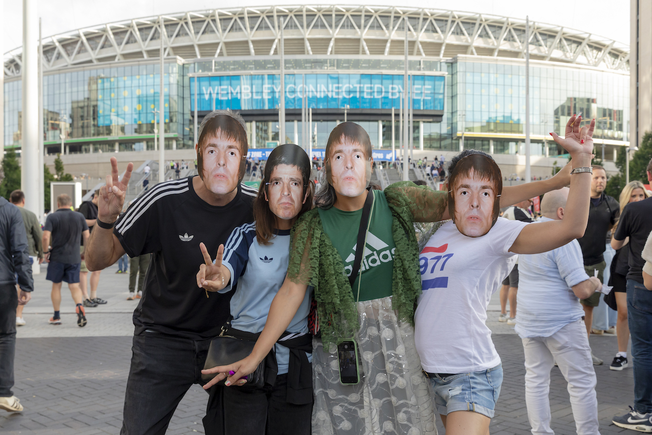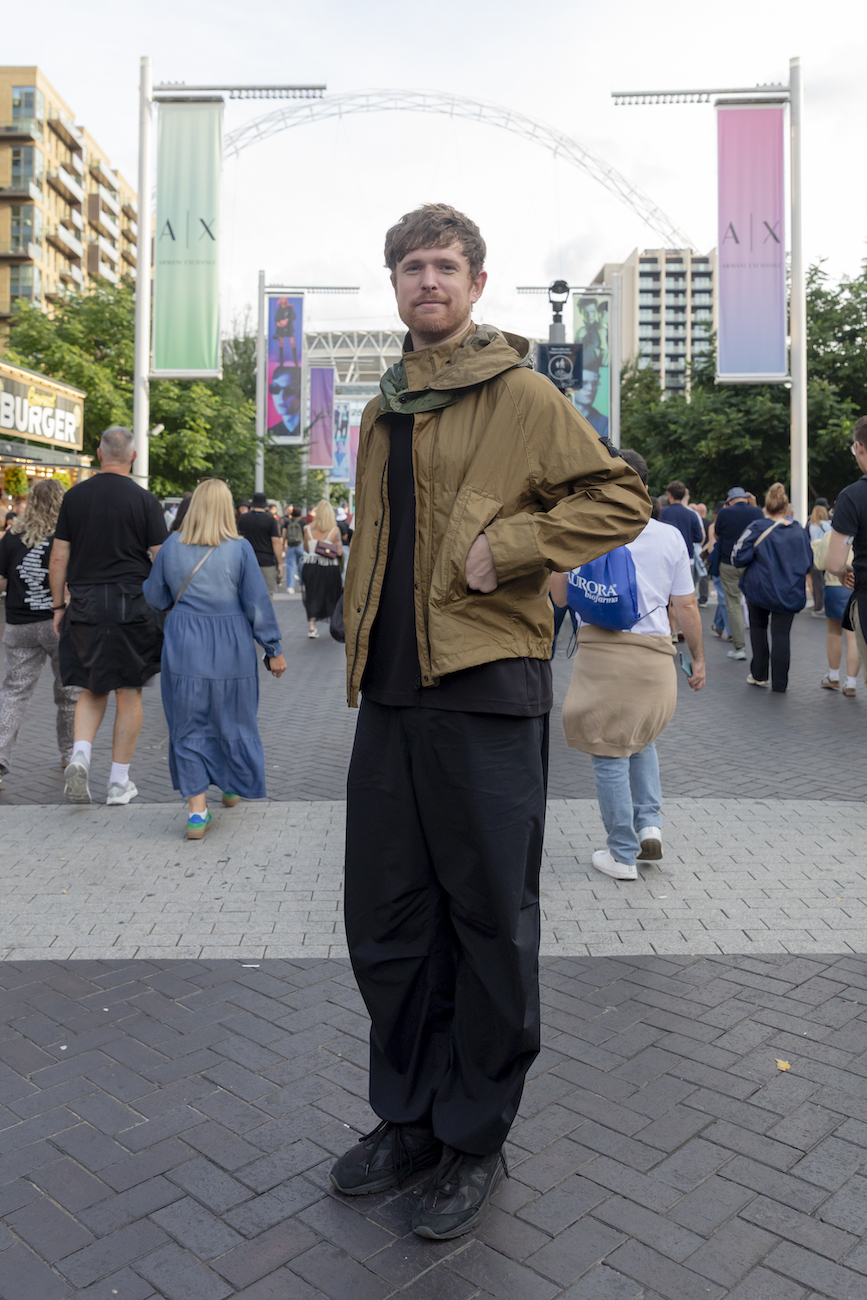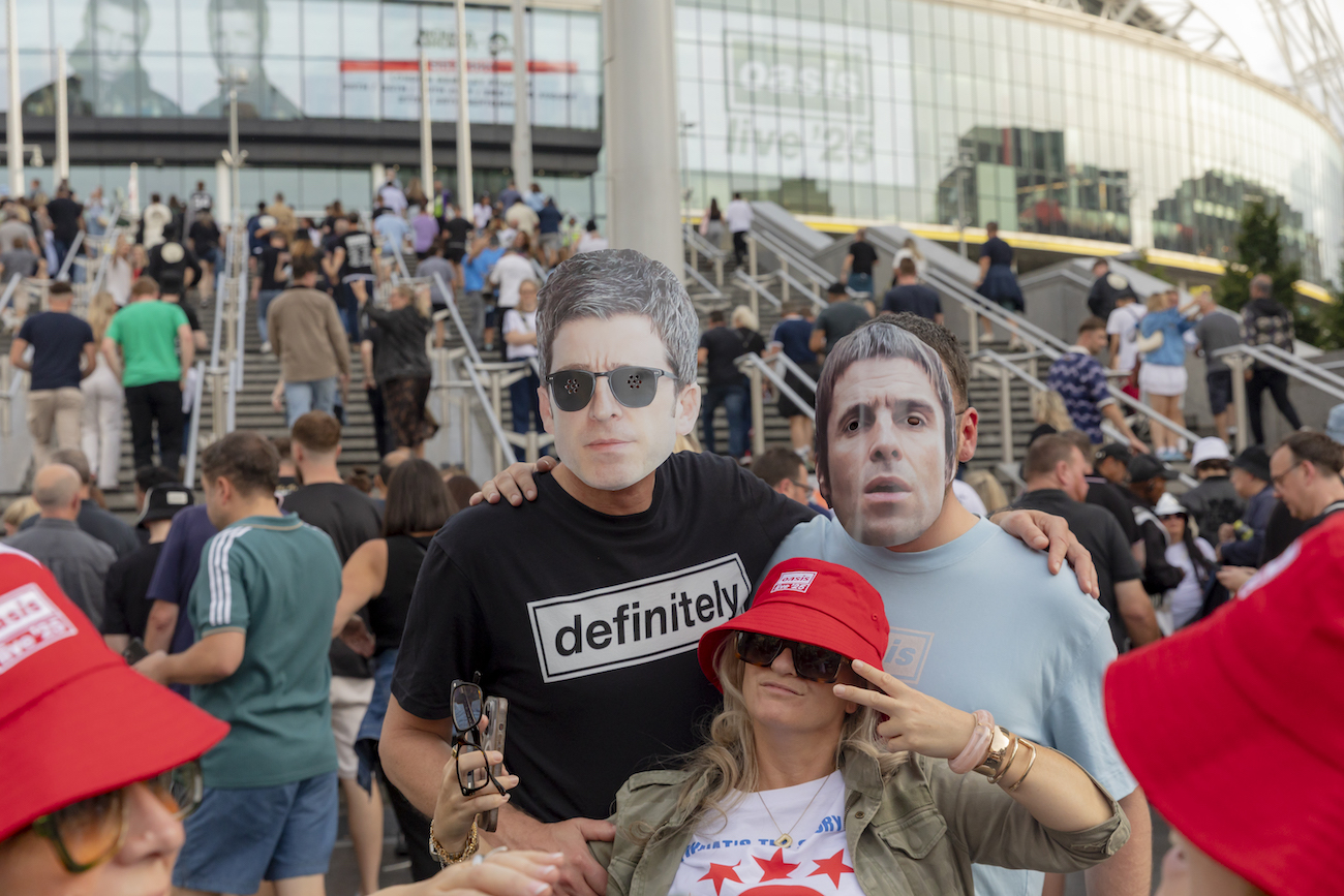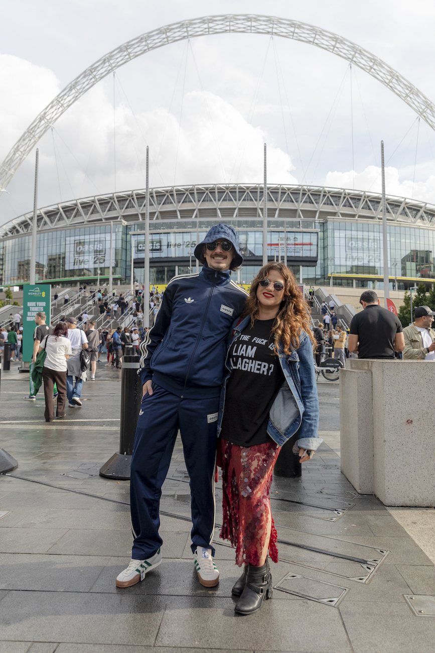 そして、上記の公式マーチャンダイズをベースとしたブロークコア風のスタイルを中心に、リアムが手掛けるブランド「プリティー・グリーン(PRETTY GREEN)」のアイテムやビンテージのオアシスTシャツ、さらにはギャラガー兄弟のコスプレを楽しむファンも。また、“カジュアルズ”と呼ばれる「ストーンアイランド(STONE ISLAND)」もしくは「C.P. カンパニー(C.P. COMPANY)」を取り入れた服装を楽しむ人々も散見され、音楽プロデューサーのジェイムス・ブレイク(James Blake)もその1人だった。