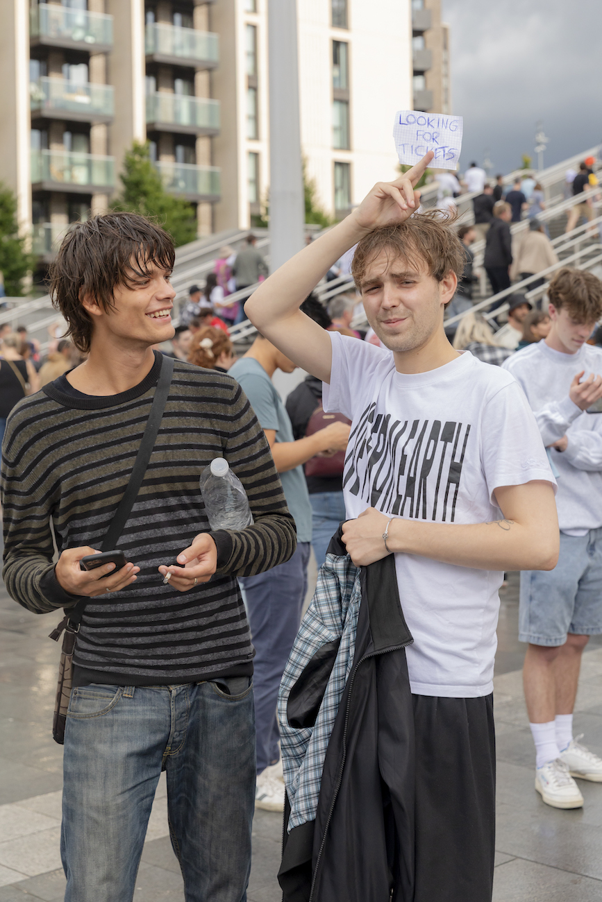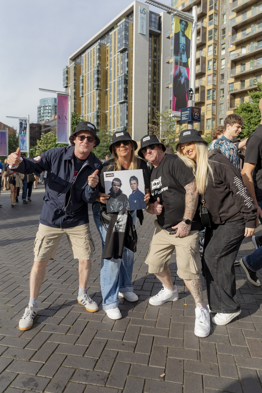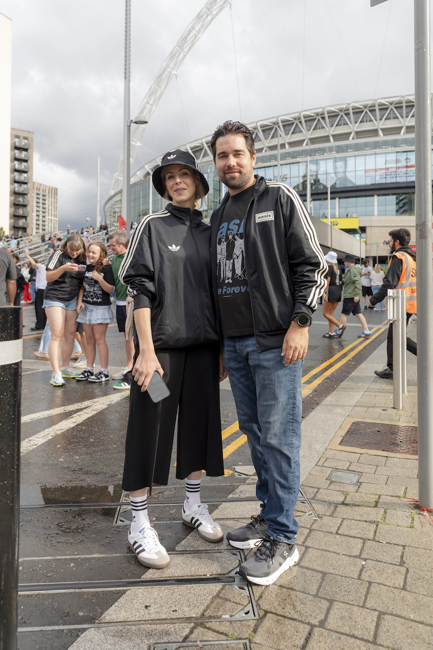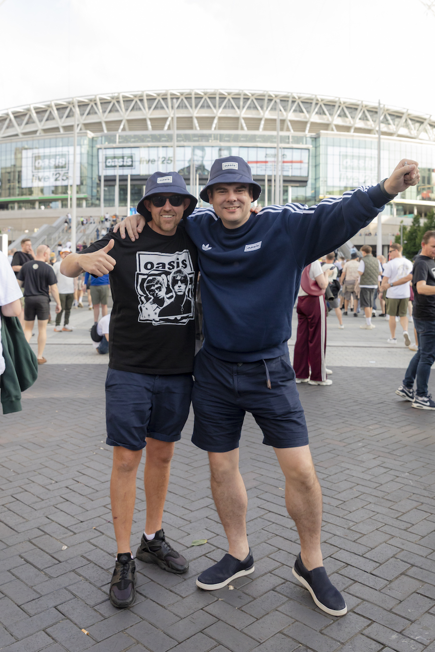 そして、上記の公式マーチャンダイズをベースとしたブロークコア風のスタイルを中心に、リアムが手掛けるブランド「プリティー・グリーン(PRETTY GREEN)」のアイテムやビンテージのオアシスTシャツ、さらにはギャラガー兄弟のコスプレを楽しむファンも。また、“カジュアルズ”と呼ばれる「ストーンアイランド(STONE ISLAND)」もしくは「C.P. カンパニー(C.P. COMPANY)」を取り入れた服装を楽しむ人々も散見され、音楽プロデューサーのジェイムス・ブレイク(James Blake)もその1人だった。