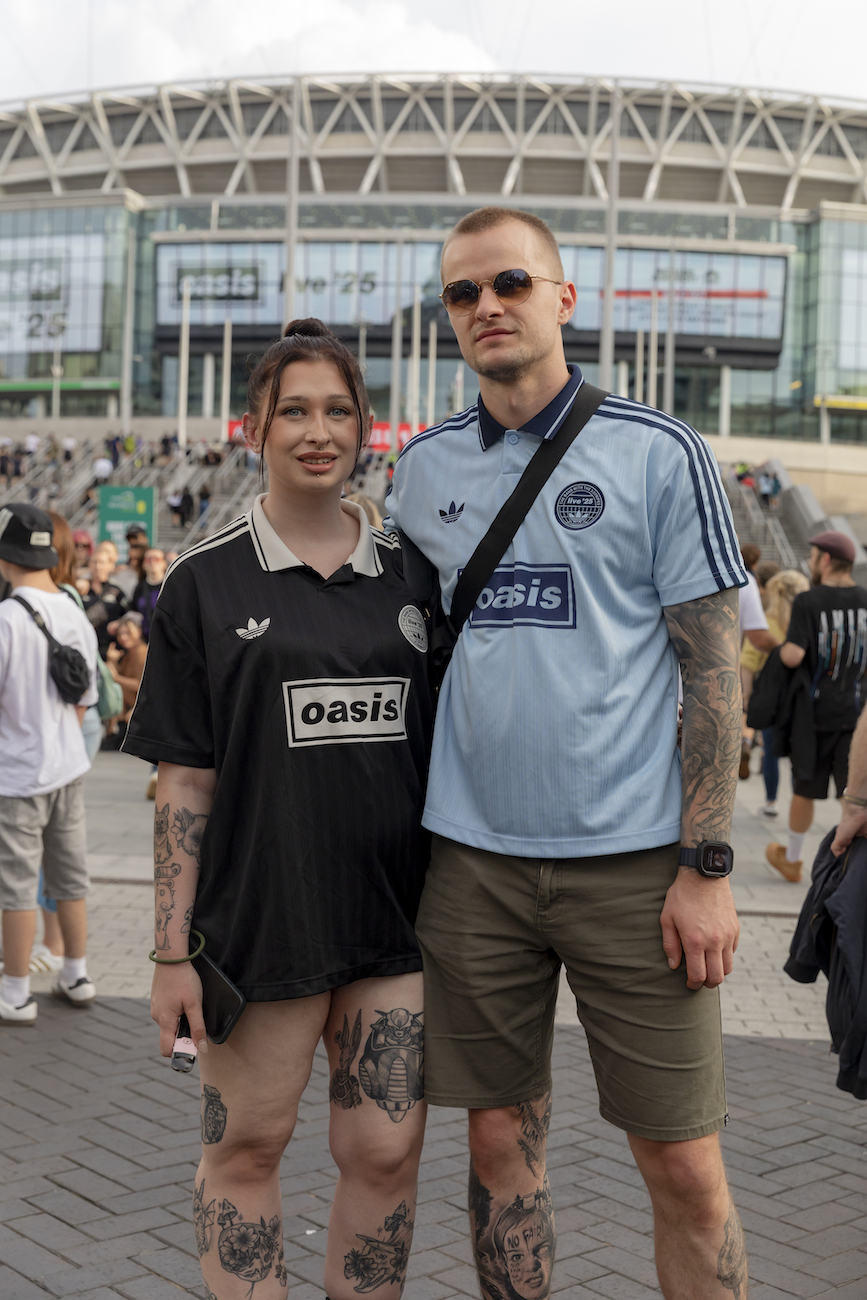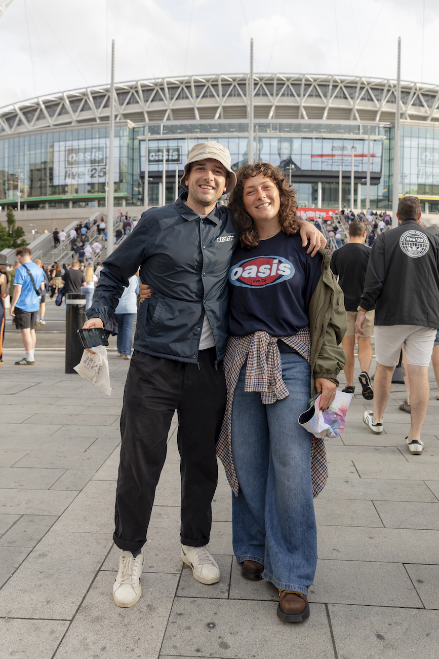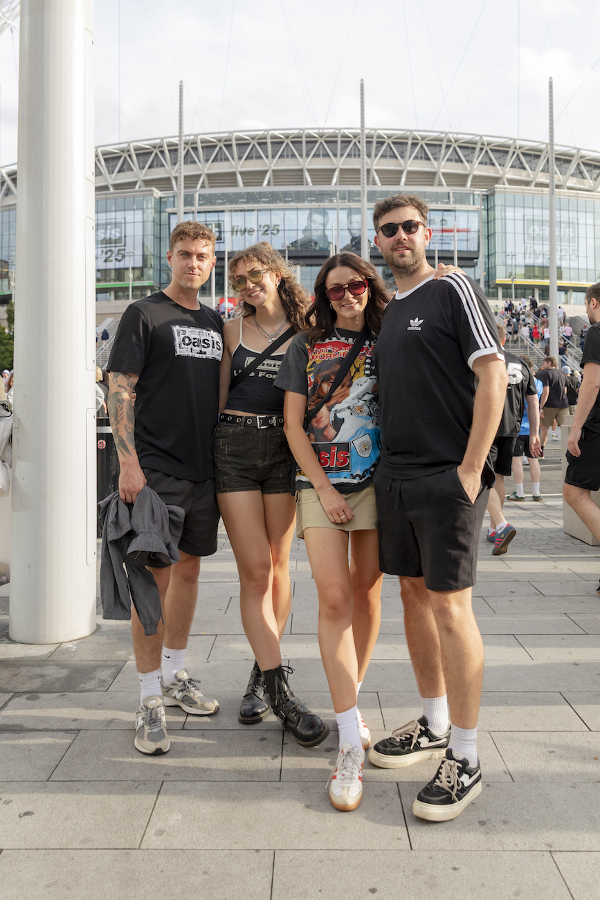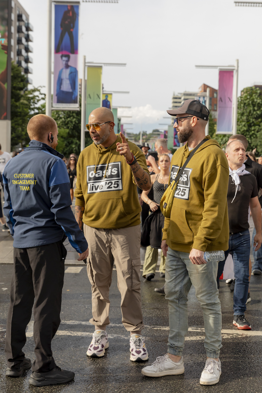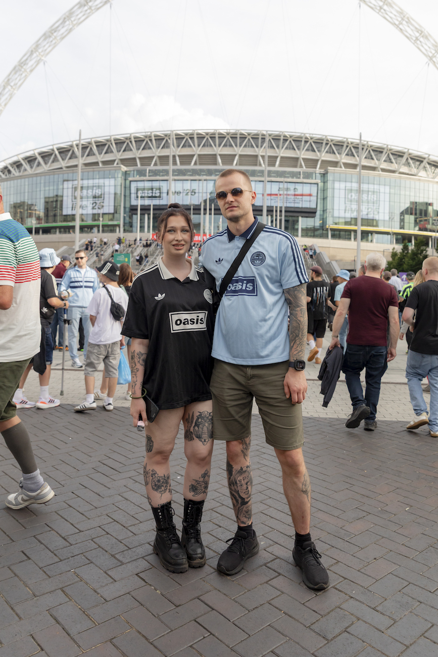 そして、上記の公式マーチャンダイズをベースとしたブロークコア風のスタイルを中心に、リアムが手掛けるブランド「プリティー・グリーン(PRETTY GREEN)」のアイテムやビンテージのオアシスTシャツ、さらにはギャラガー兄弟のコスプレを楽しむファンも。また、“カジュアルズ”と呼ばれる「ストーンアイランド(STONE ISLAND)」もしくは「C.P. カンパニー(C.P. COMPANY)」を取り入れた服装を楽しむ人々も散見され、音楽プロデューサーのジェイムス・ブレイク(James Blake)もその1人だった。