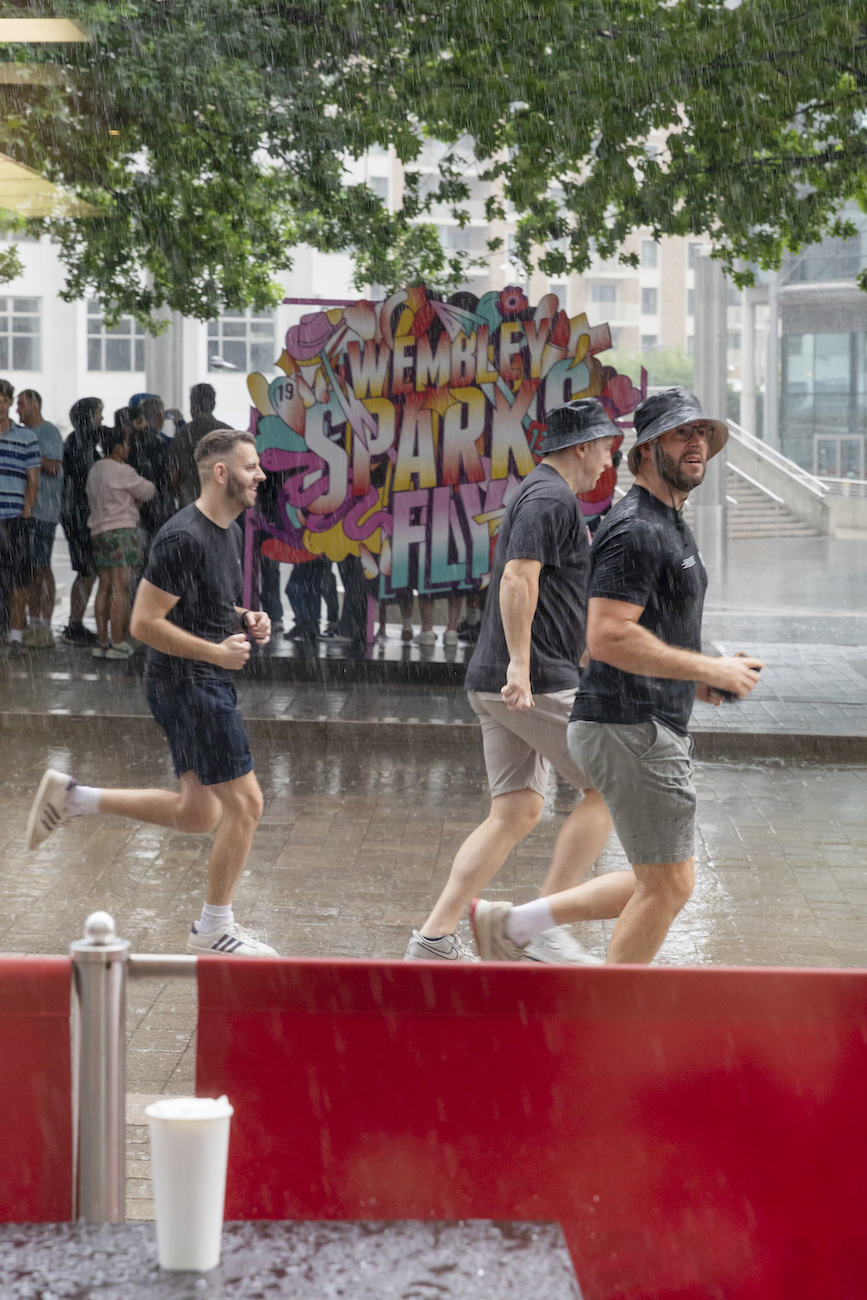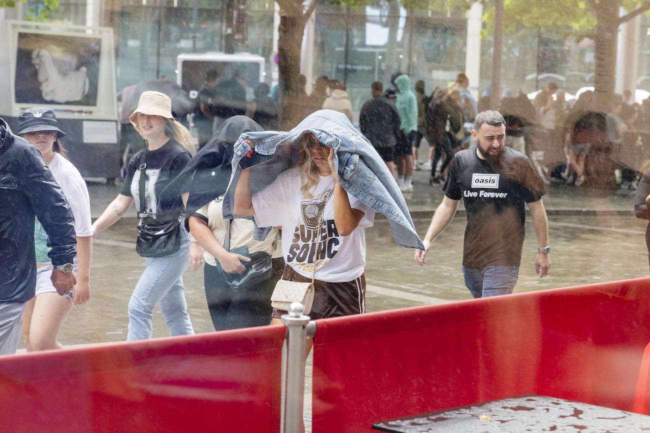 開場の1時間前に突如として土砂降りに見舞われ、約30分ほどで止んだがびしょ濡れで参戦するファンを多数見かけた PHOTO:HIROYUKI OZAWA