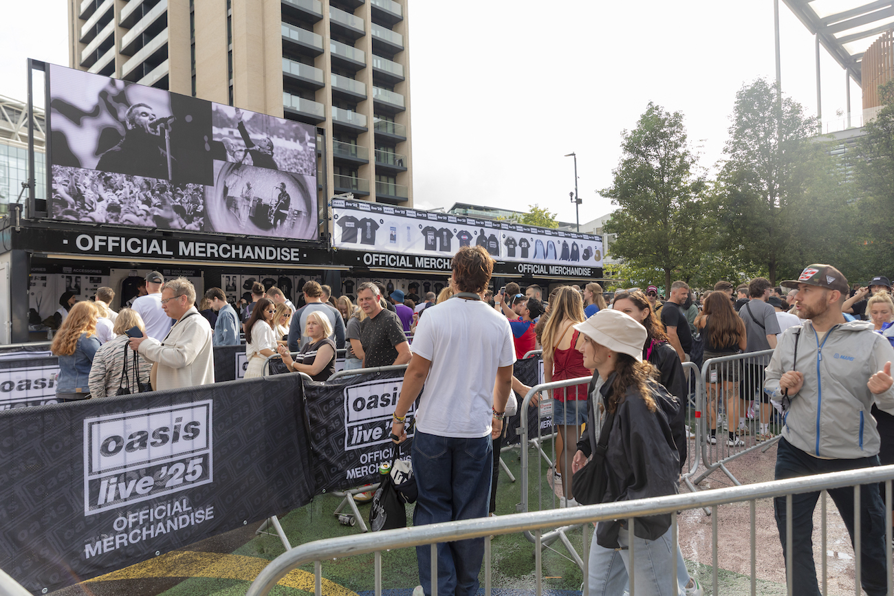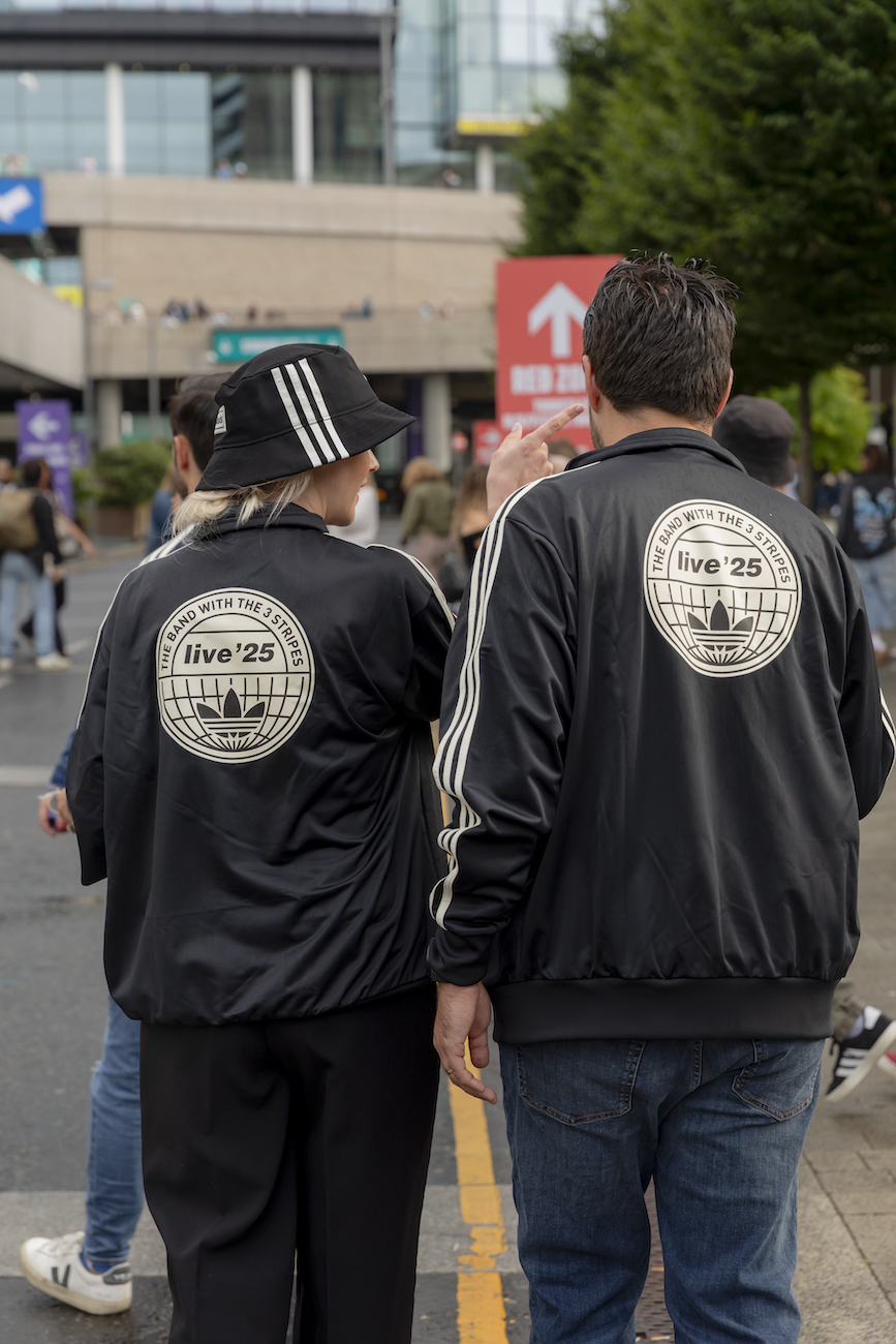 というのもオアシスは、ワールドツアーにあわせて30種類以上のTシャツをはじめとしたオリジナルアパレルを展開しているほか、多くのブランドともコラボ。その中でも、往年のノエル・ギャラガー(Noel Gallagher)とリアム・ギャラガー(Liam Gallagher)が頻繁に着用していた「アディダス(ADIDAS)」とのコラボコレクションは人気が高く、会場の特設ショップや公式オンラインストアでは品薄状態となっていた。